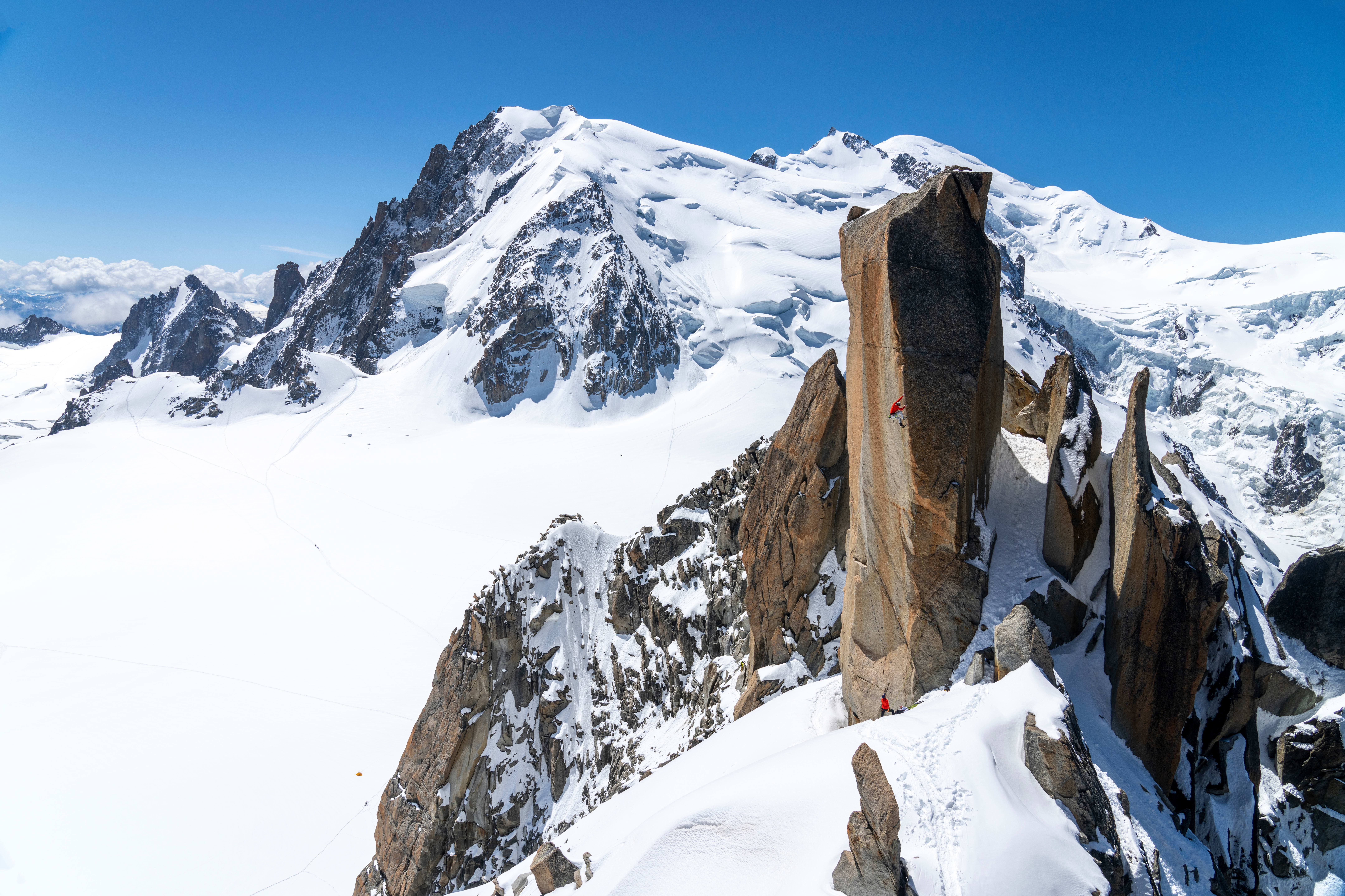 For Honnold – one of the biggest stars in the climbing world – it was also a learning experience. For all his success on rock, he doesn't spend a lot of time at altitude. "He wasn't used to crampons or ice axes," says Hojac. "We did some acclimatisation trips around the Aguille du Midi, and Alex adapted quite well. In the end, the first climb – the Gelbe Kante, a 14-pitch VI+ climb in Südtirol – was the hardest. Alex said it was the maybe most extreme high alpine experience of his life!"