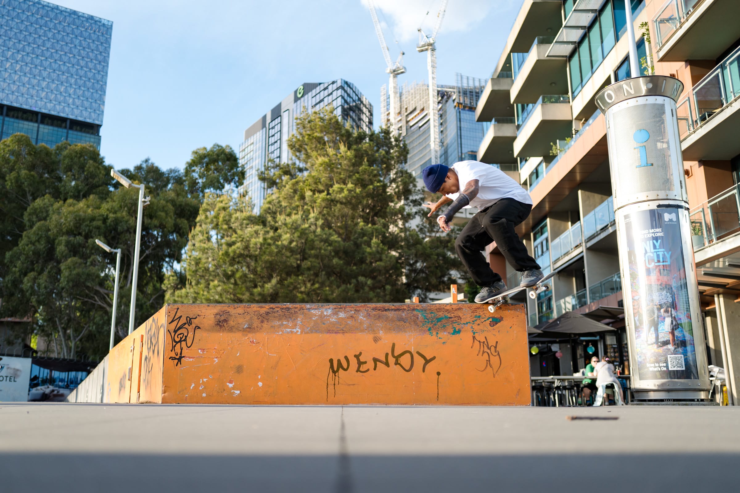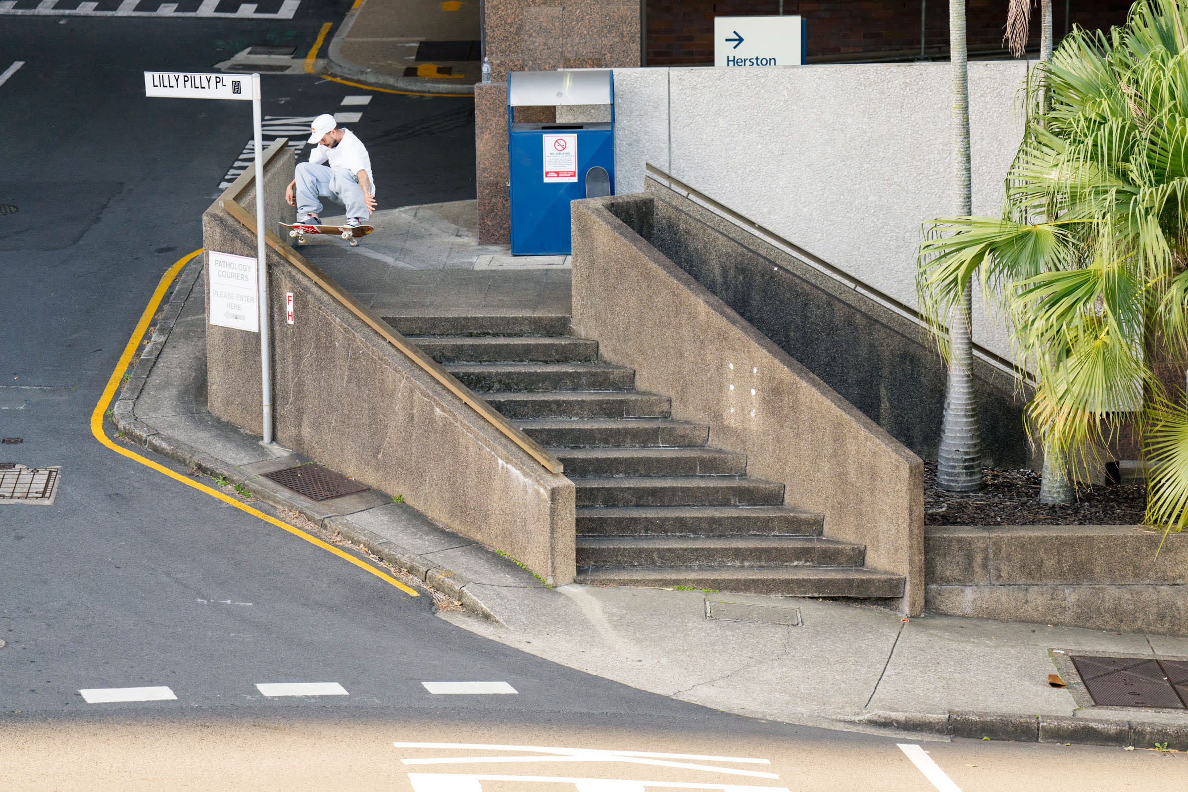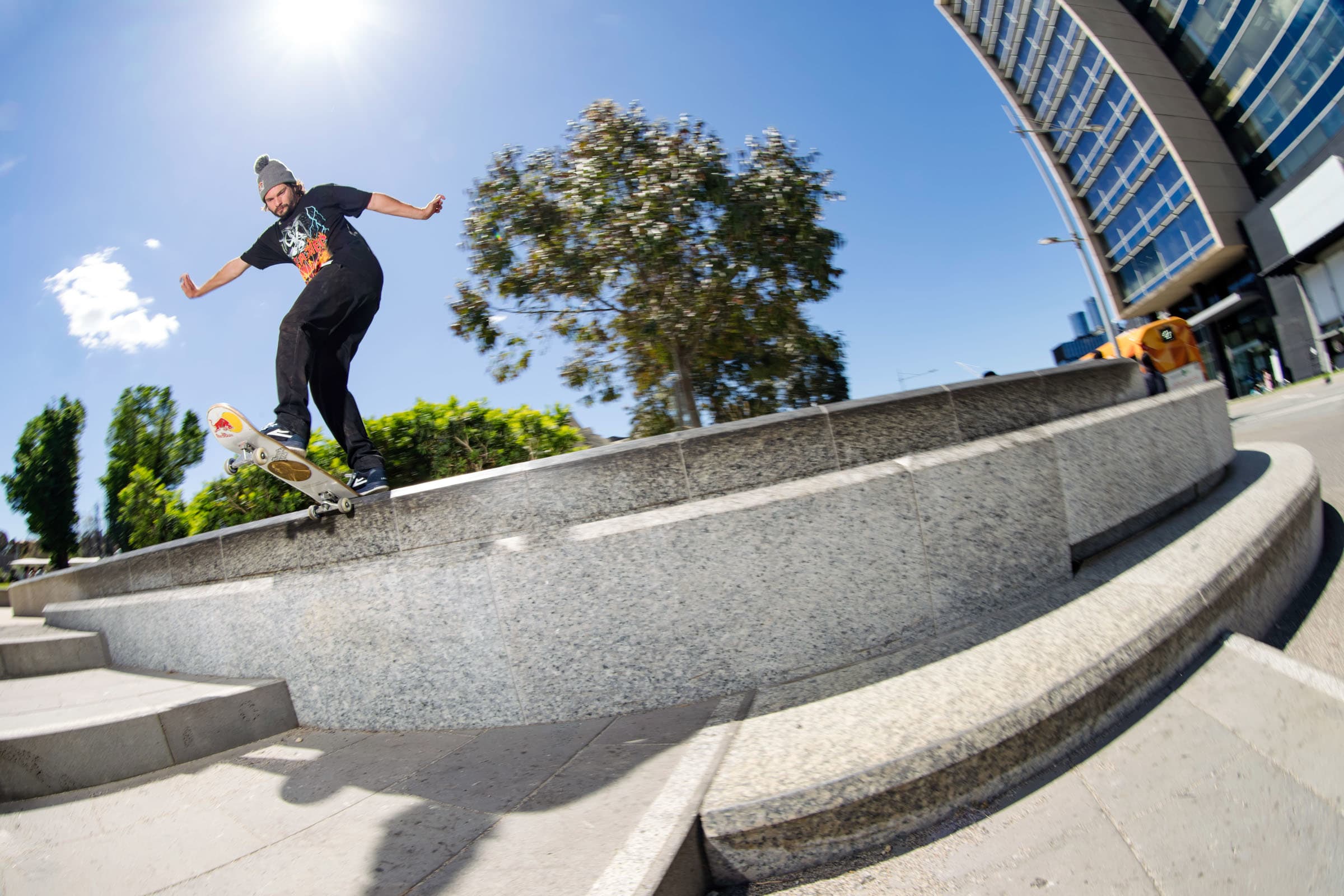 The flip side of that coin is you have to bring your A-game. Every city and surf town in Australia has its own ballistic scene – particularly Melbourne. The country has given the international pro ranks skateboarders from Matt Mumford, Chad Bartie and Morgan Campbell through Dustin Dollin, Chima Ferguson, Dennis Durrant, Tommy Fynn, Shane O’Neill and up to today with rippers like Jack O’Grady, Noah Nayef and Rob Pace making their own distinctive impacts upon the world scene.