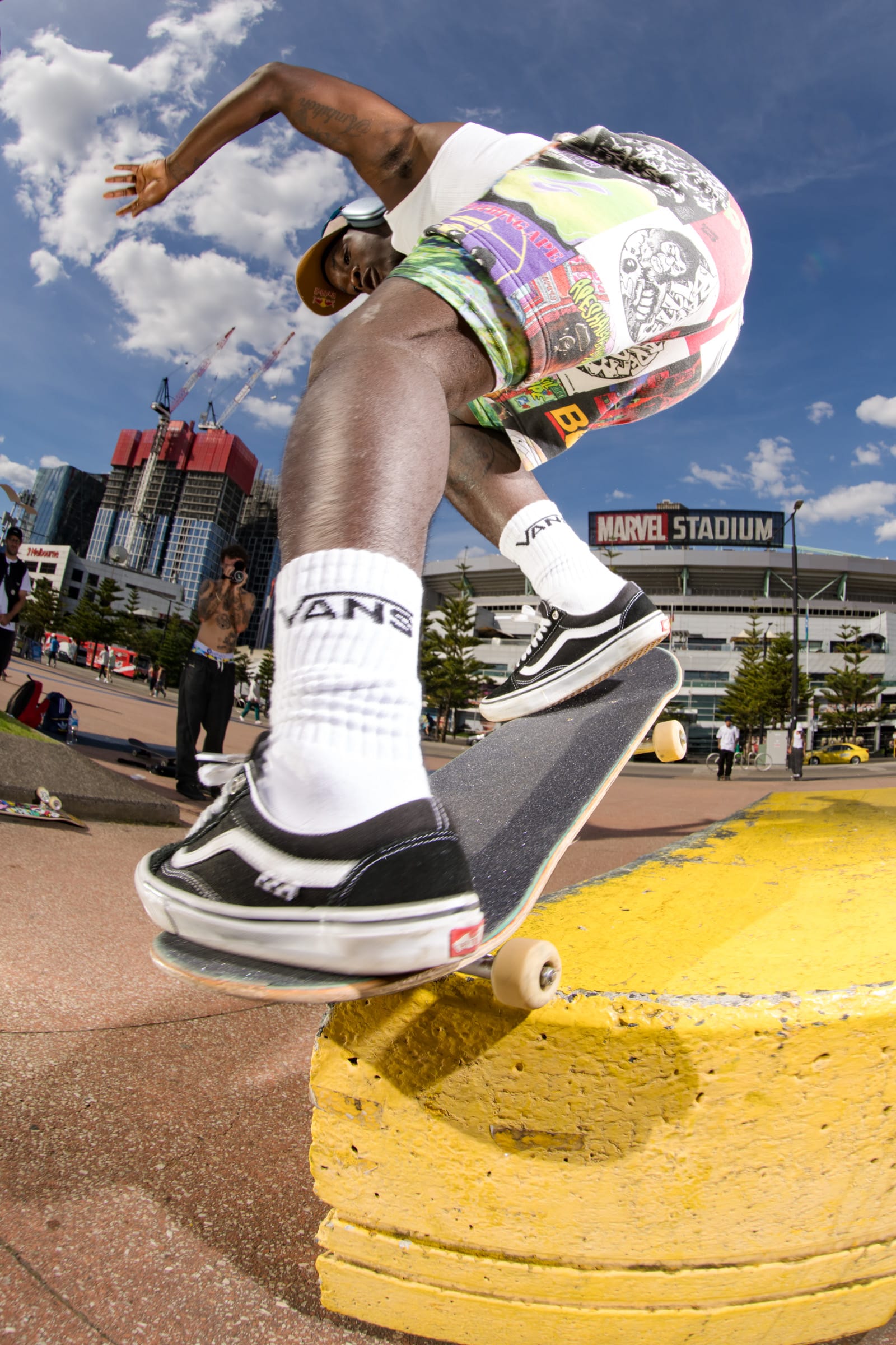 As well as putting on four jam-packed skate demos at the very different skateparks of Riverslide, Paddington, Pizzey and Sydney skateparks, respectively, our stellar squad – Torey Pudwill, TJ Rogers, Zion Wright, Gustavo Ribeiro, Felipe Gustavo, Alex Sorgente, Jamie Foy and Jake Wooten – also spent every hour between demos filming street footage at as many spots as we could hit up along the way. Flying in for the Sydney finale came the one and only Leticia Bufoni for a demo, which morphed into a best-trick session at a downtown stair set afterwards.