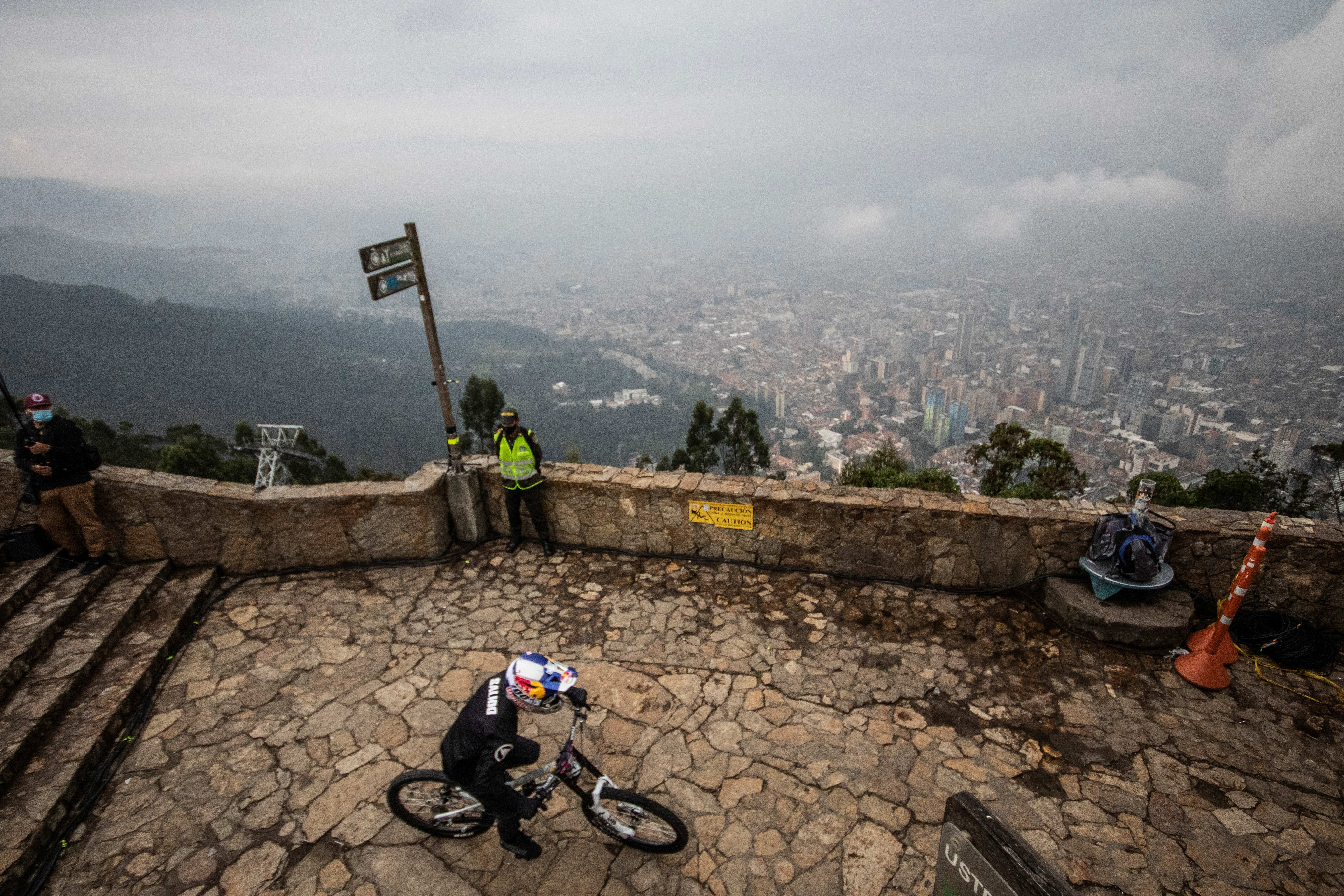 More than 1,500 steps make up the Monserrate track, which is mainly a cobbled path down from the famed Monserrate church on the mountain that overlooks Colombia's capital city. It also boasts 27 obstacles/features, including wallrides, gap jumps and a tunnel. The course, which measures 2.4km, is recognised by Guinness World Records as the longest urban downhill race in the world.