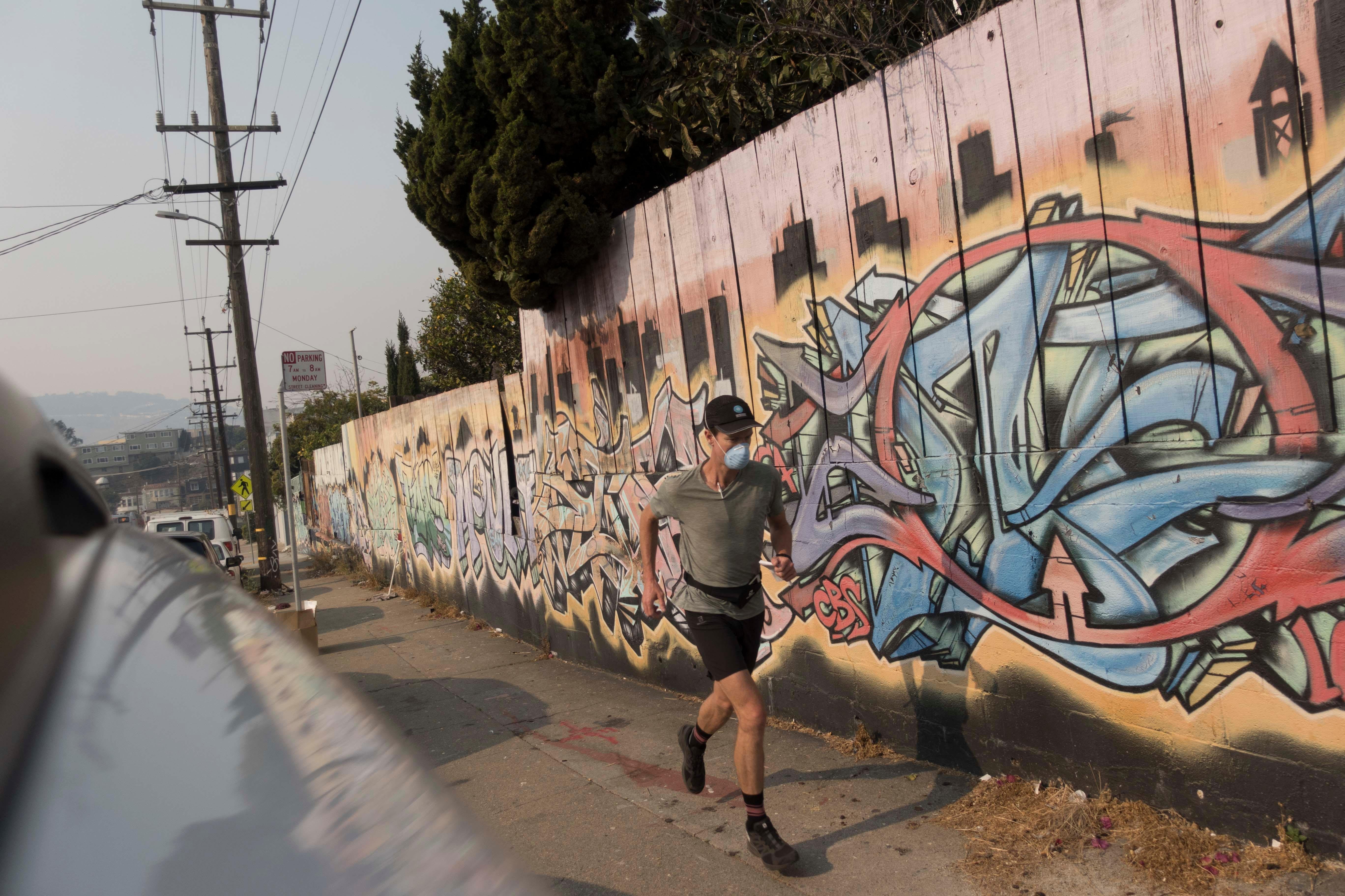 After a deadly blaze known as Camp Fire erupted in Butte County, Northern California, the resulting smog had a knock on effects for Gates, who ran wearing a mask for 10 days to avoid inhaling as much bad air as possible.