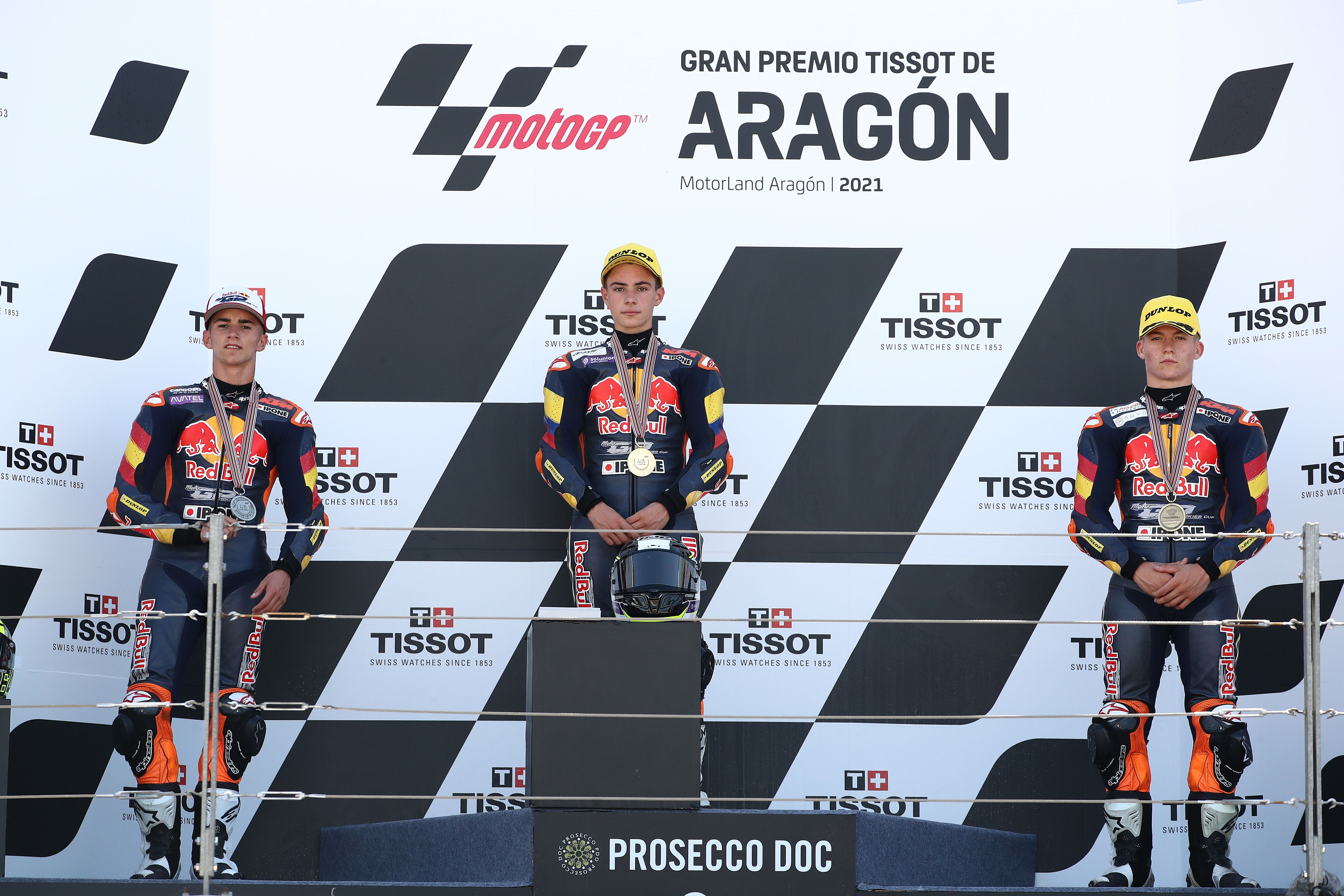 “Today I made a good start and got into first position in a few laps. The race was very difficult but I stayed in the group all the way and finally I could finish the Red Bull Rookies Cup championship with a first place.”