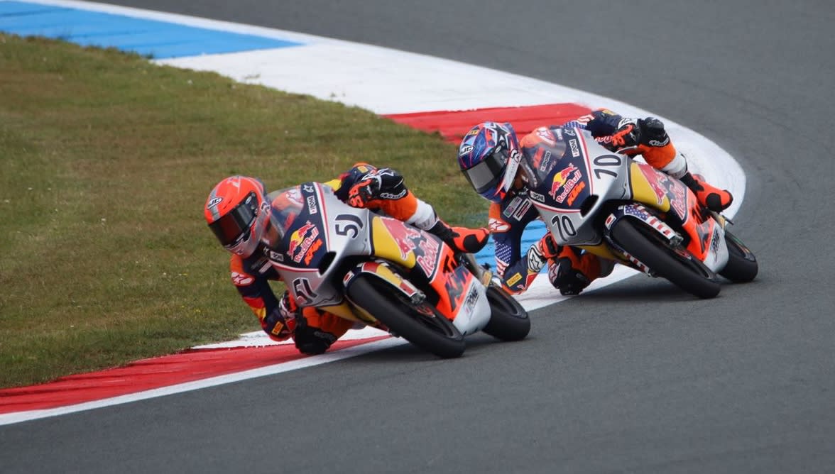 “In 2018 my family and I moved to Barcelona because there was great structure for developing young riders. I raced MiniGP bikes (110cc 4 stroke) for the next couple of years, and I learned a lot because I was racing against the best kids in the world. When I was 11, I got a chance to ride on my frist MotoGP track which was Circuit Ricardo Tormo, racing in the Cuna de Campeones Moto5 series. My family has always played a huge part in my racing. The biggest support they’ve given me was when we moved from Los Angeles to Barcelona in 2018 because this was a huge sacrifice and it was very difficult in the beginning. Even before that, my Dad was my mechanic and coach up until I was in the European Talent Cup, and my Mom used to drive me around if my Dad was working. They have both worked full time the whole time, so they invested a lot of time and money to make this happen.”