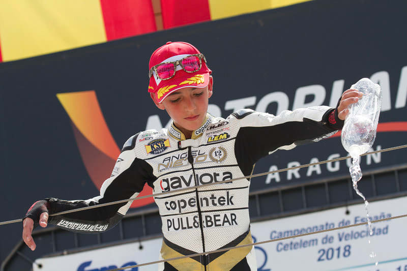 "My father put me on a motorcycle when I was two years and eight months old. He liked that world and introduced me to it, my father raced himself as an amateur. My father is a salesperson in a multinational and my mother is a hairdresser. I am an only child. At school, I like maths and in my free time playing basketball with my best friend."