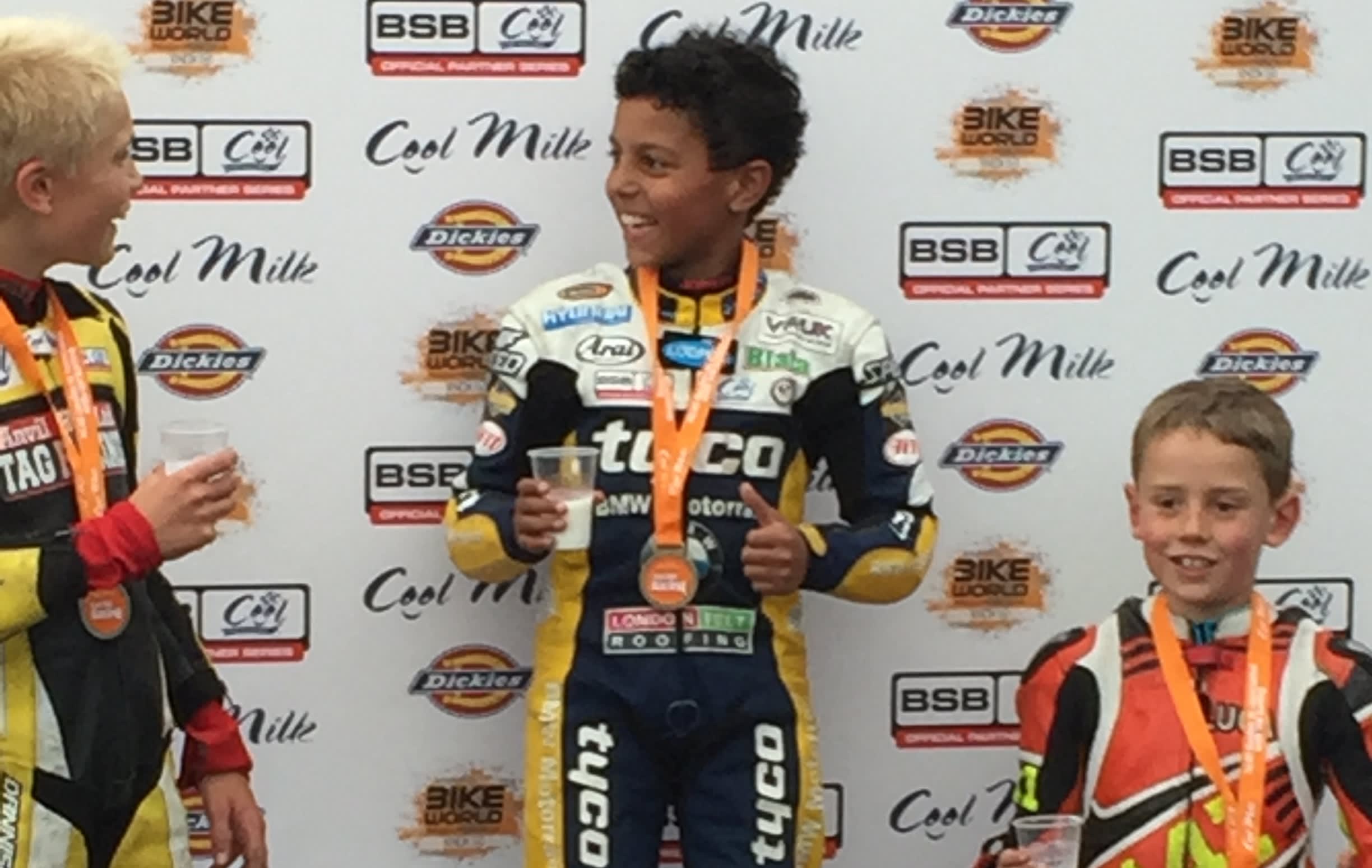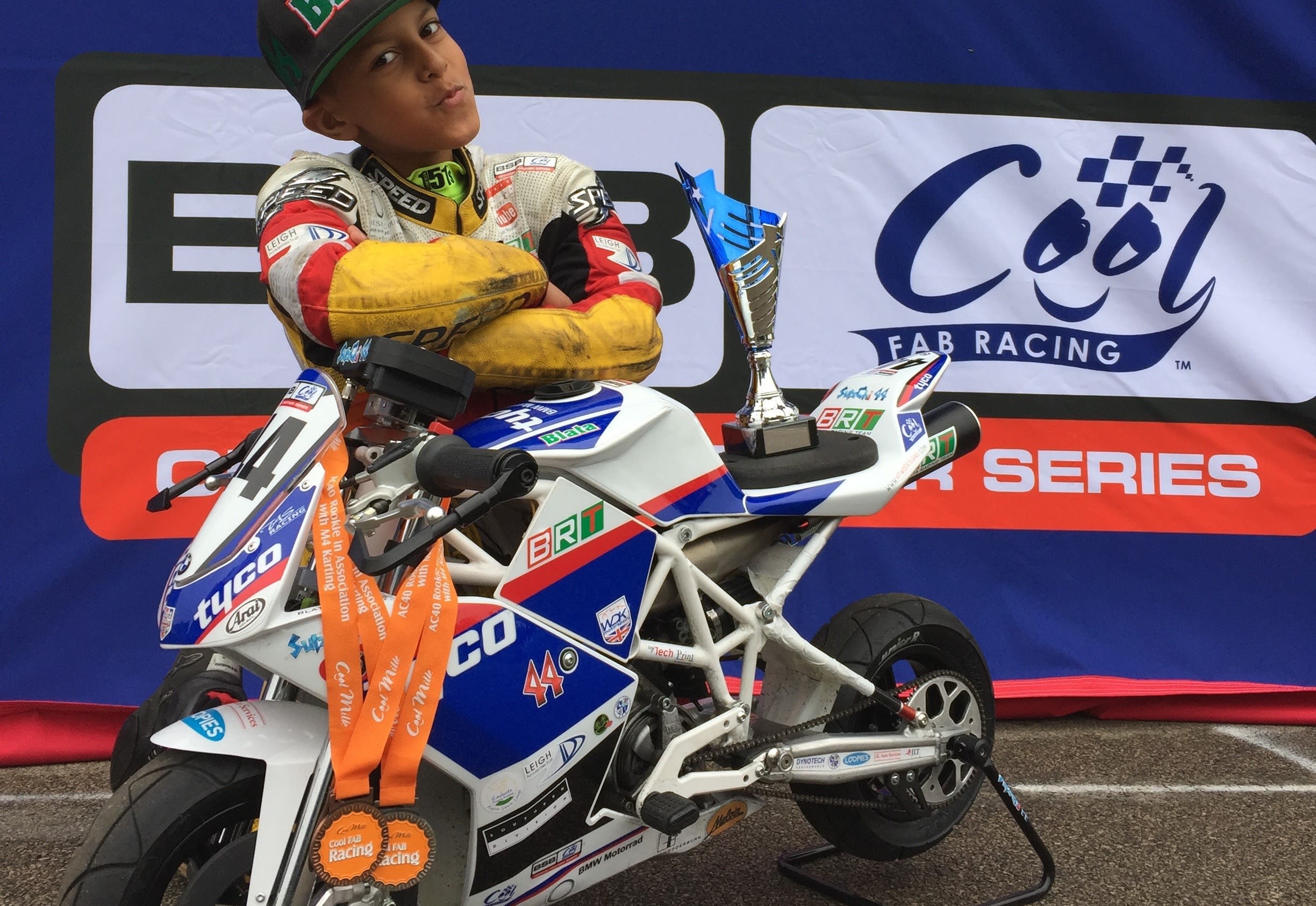 "I was offered a place in the Tyco BMW team provided I proved myself in the last half of the 2016 season. We had to start racing in June if I wanted a chance and my first race was on a training academy hire bike on my 9th Birthday at Whilton Mill which is now my local track. It was great to meet all the Cool FAB Racing people and it was a fun place to be, I might have been a bit apprehensive, but it was exciting too. It was Max Cook’s dad who helped us out and got our bike running as best it could. We even had a motorcycle insurance firm film us and we stayed at the circuit in a tent. After the last 4 rounds of the 2016 championship, I got from being lapped to getting my first 2 podiums and I earned my place in the Tyco BMW Junior Team. My first full season of racing didn’t quite go to plan. Most of the Brits from the junior paddock go on the Benidorm Minibike Trip which is great preseason practice."