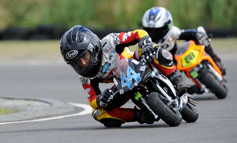 "Except when I was there, I was clipped by another rider and had a really big highside fracturing my wrist & elbow which was really annoying because I was a second faster than the other riders in my class. I ended up missing almost 2 rounds of the championship that year after breaking my thumb at my first round back too. It was a tough year 2017 but I finished off with 5 wins, more podiums, had lots of fun and made more friends. In 2018 I progressed onto the faster minimotos and spent a year battling and having fun racing in two classes. I had a few injuries but raced the whole season and finished 3rd and 5th in the championships. I learned how important it is to always try my best right from the beginning of the season. I tried really hard on the AC bike but took it a bit easier on the faster LC."