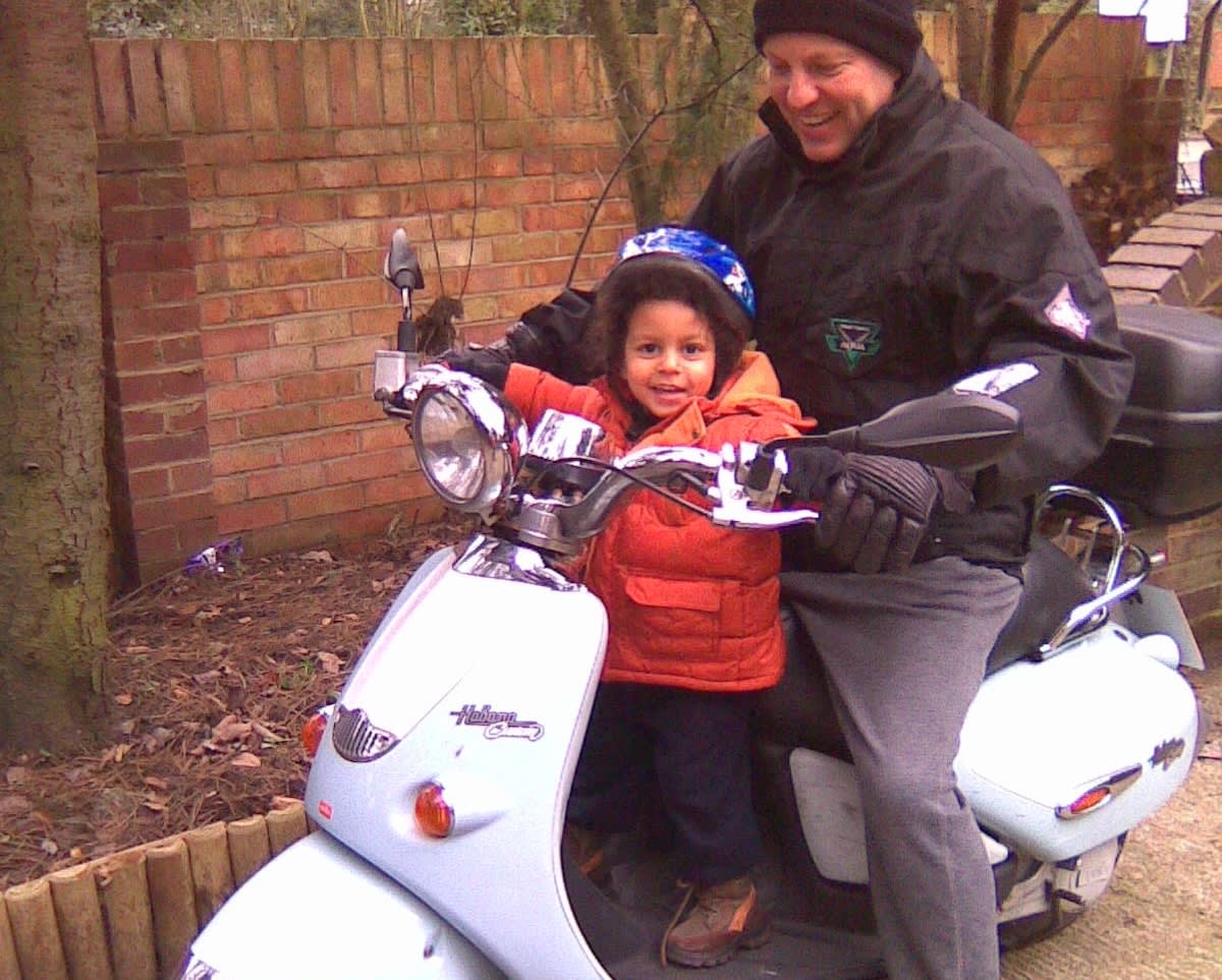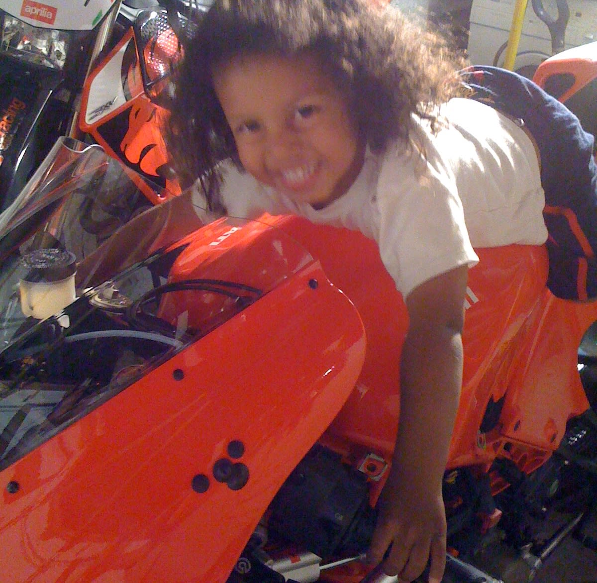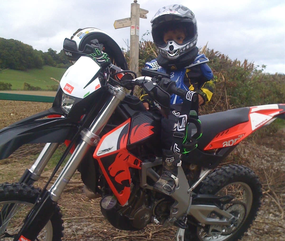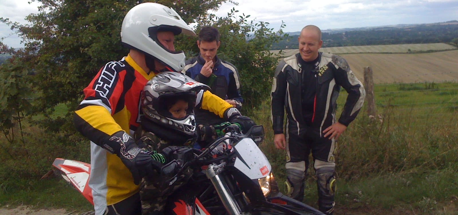 "My very first ride on a bike was on my dad's scooter, we rode round the carport area, it was such great fun. After a few min of literally going round in circles my dad had had enough and wanted to stop but I kept saying “again!”, it had dad and grandad in stitches. I was 2¾. Just after my 3rd birthday, I found dad’s bikes in the garage. Mum and dad found me after a little while but I already knew I just had to have a go on them. I started riding about on the front of my dad’s dirt bike shortly after that. He used to go green laning and I used to hold onto the handlebars. In the end, he got some BMX stunt pegs with grip tape for me to put my feet on and I used to do the throttle as well but I couldn’t reach the brakes."