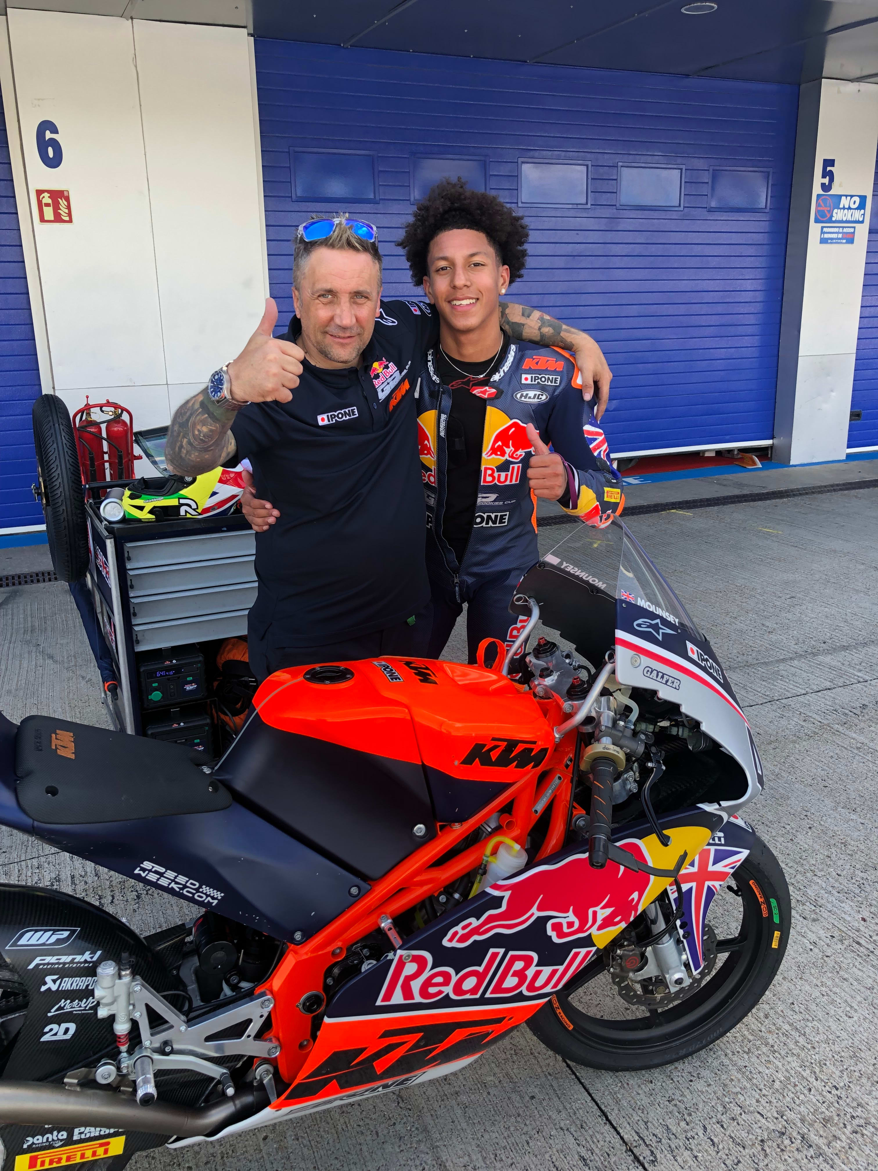 "It was a steep learning curve, but I was proud of my accomplishments with two top 10s by the end of the season and I won the Enerydots Award for the Most Up and Coming / Receptive Rider. Into my second season of Moto3 and with some preseason testing I felt confident to continue my progress. At Silverstone I was just over 0.6 off and 5th fastest. By the time we got to Donington, now 14, I learnt how to take a tow and stayed and battled in the front pack, it was awesome. I even got the fastest lap. Towards the end of that season my family moved out of London to Silverstone so I could accept the offer to study at the Silverstone UTC, which meant I could study High Performance Engineering and BTEC Sport as part of my GCSEs. We visited it in 2017 having seen it when we went to the first BTC selection. I was determined to go after the wildcard at Catalunya because the top team in the RFME was run by the Monlau Repsol [now Monlau Motul] Technical College and when we’d got home Dad and Grandma booked onto an official open day and that was the step that lead to me going."