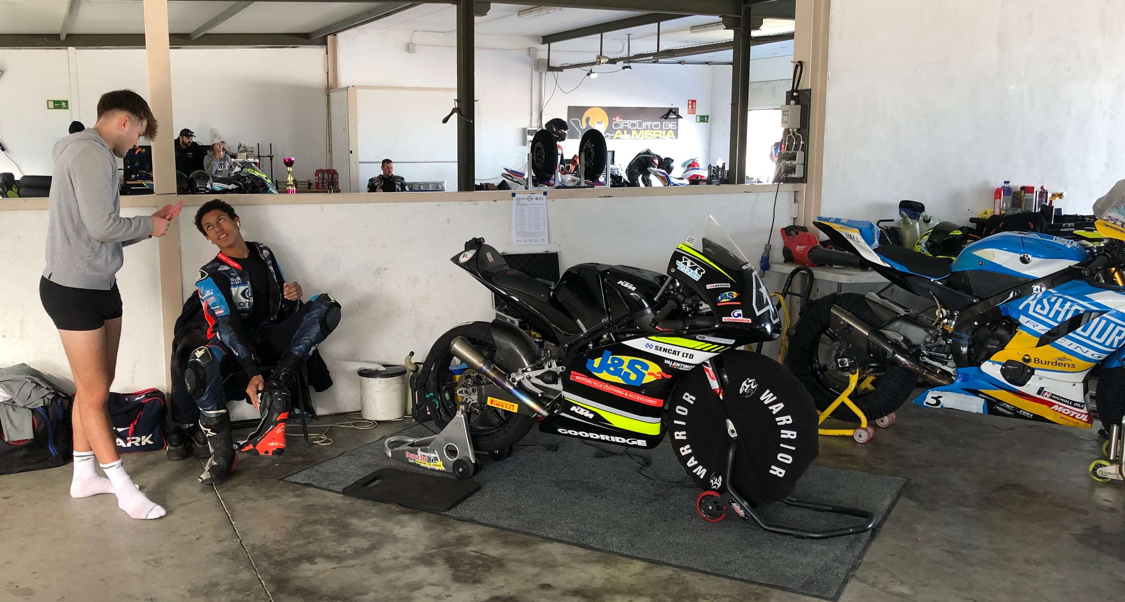 "At Brands we had a very unlucky situation when the chain jumped off whilst running in 5th on the first lap up from 10th. I was collected by the pack in a Red-flag incident. It was big but Shark, Alpinestar Techair, Frank Thomas & the MSV Medical Team saved me to fight another day, which turned out to be the very next day. On the Sunday I started from 27th and finished 11th still rather battered and bruised but I gave my all. By the time I got to 11th, the next pack was 10 seconds ahead. Brands Race 2 was all about endurance. It was a good day. Overall the season was a good save and showed promise for 2023. It still felt a bit like 2017 with much promise in prospect but scuppered before we even started, although for different reasons. It just taught me even more to take every opportunity now. Right now when it presents itself. Come 2023 we invested in the preseason and took my Moto3 out to Spain having learnt the trick of keeping the van and the bike at Alicante airport then flying home to save on the costs. It meant we got a fair few days out on tracks and some miles under my belt."
