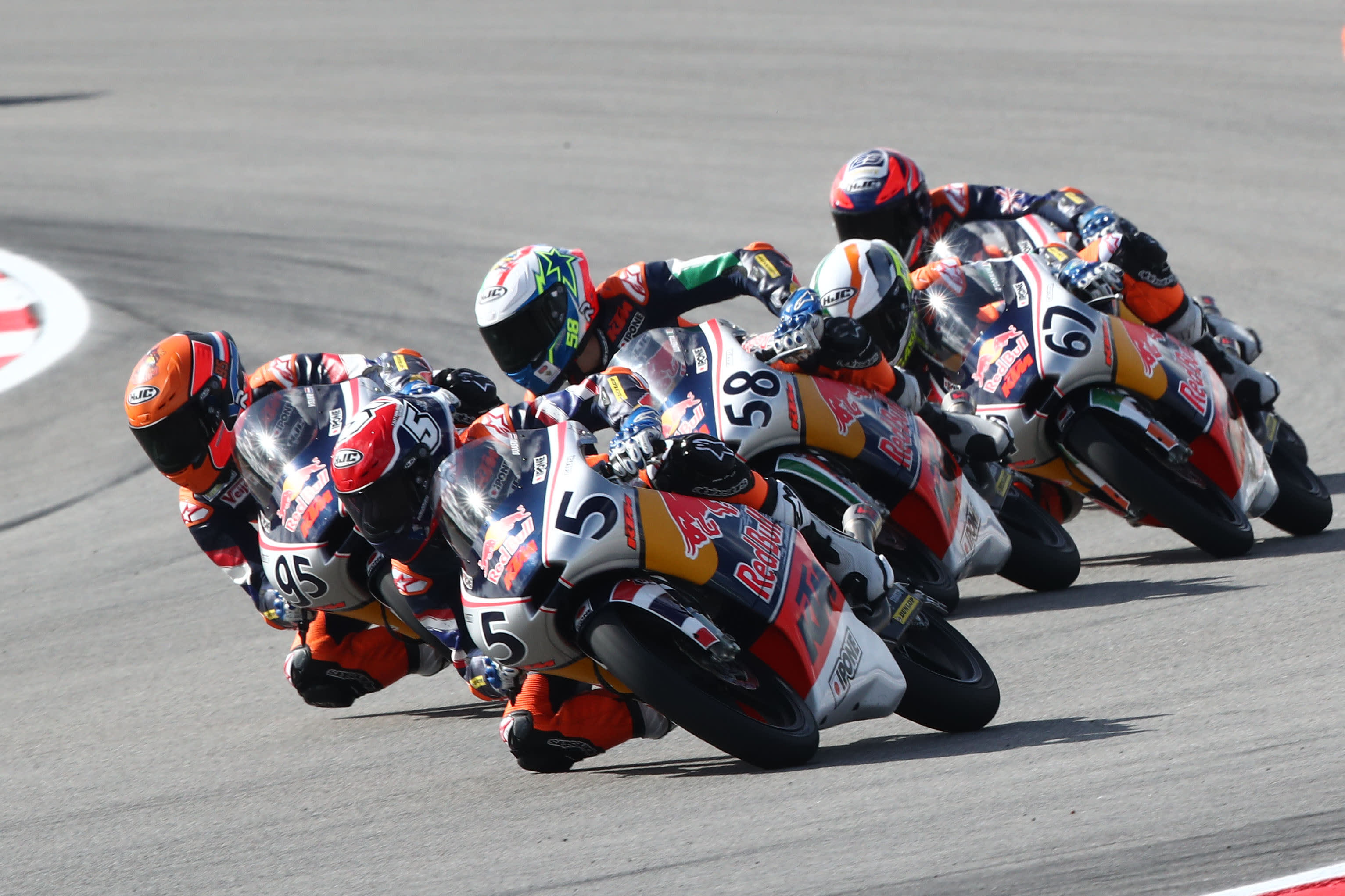 After a lousy start from the middle of the front row the 14-year-old Spaniard cut his way through to the lead pack only to hit a fallen bike on the last lap. “Bad luck, I am happy because I had a lot of rhythm and next time will be better. I hope to do a better start and have the chance to make the podium.”