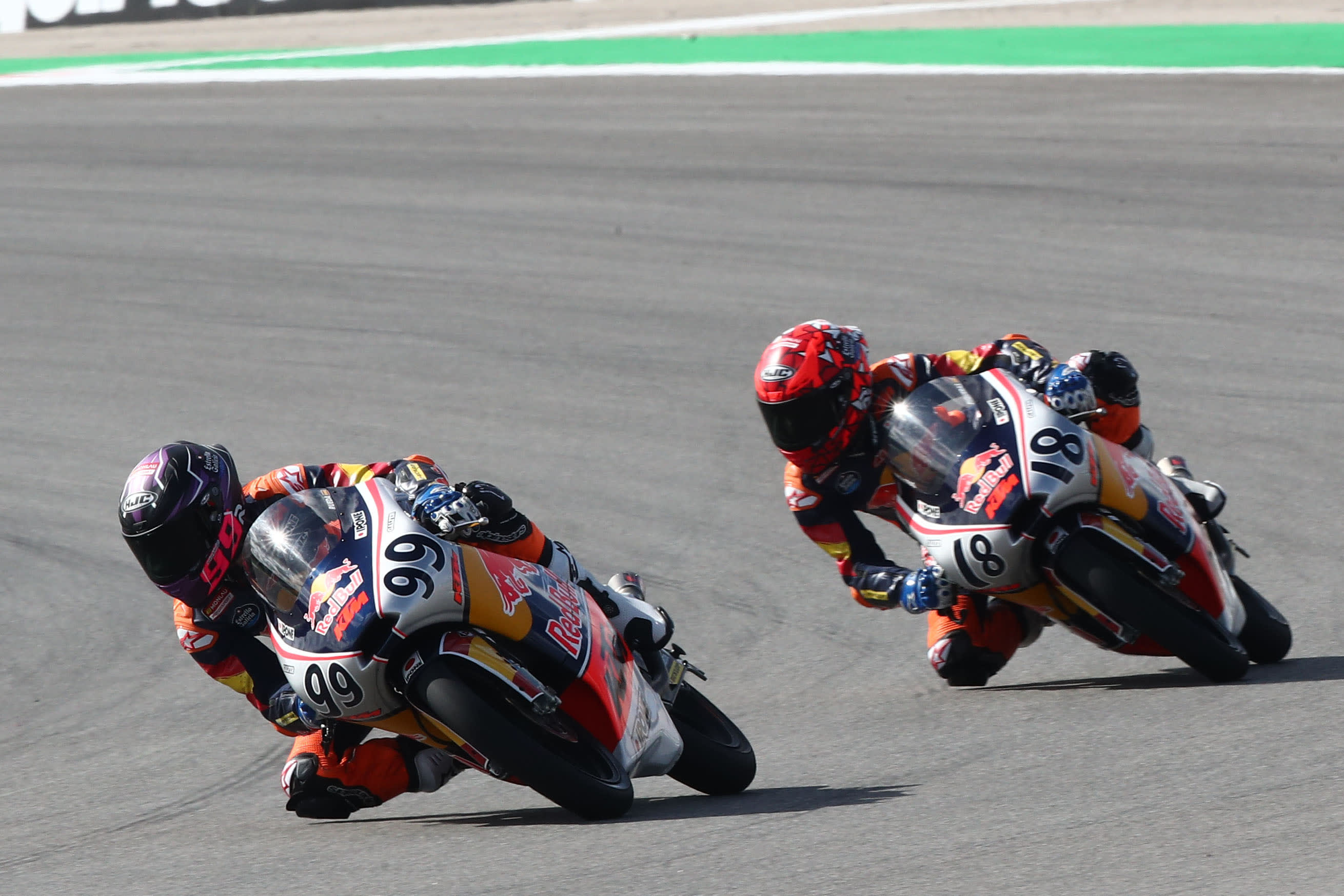 Pole man Piqueras broke two toes in his right foot when he fell challenging Rueda for the win. “Yes, I cannot ride tomorrow, hopefully in Jerez. I am happy with my race, I just think this was unlucky. It slid when I changed gear and I could not hold it.”
