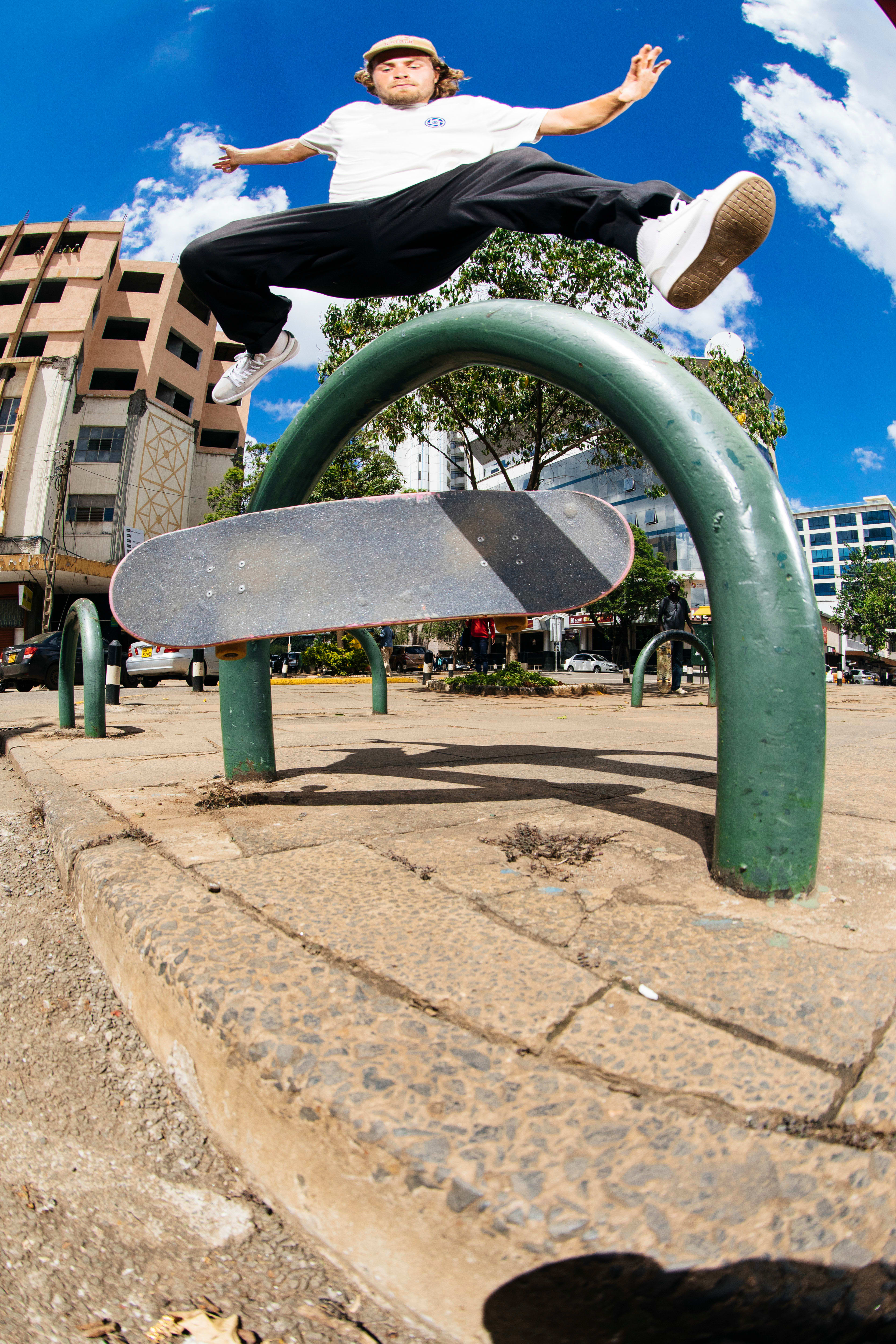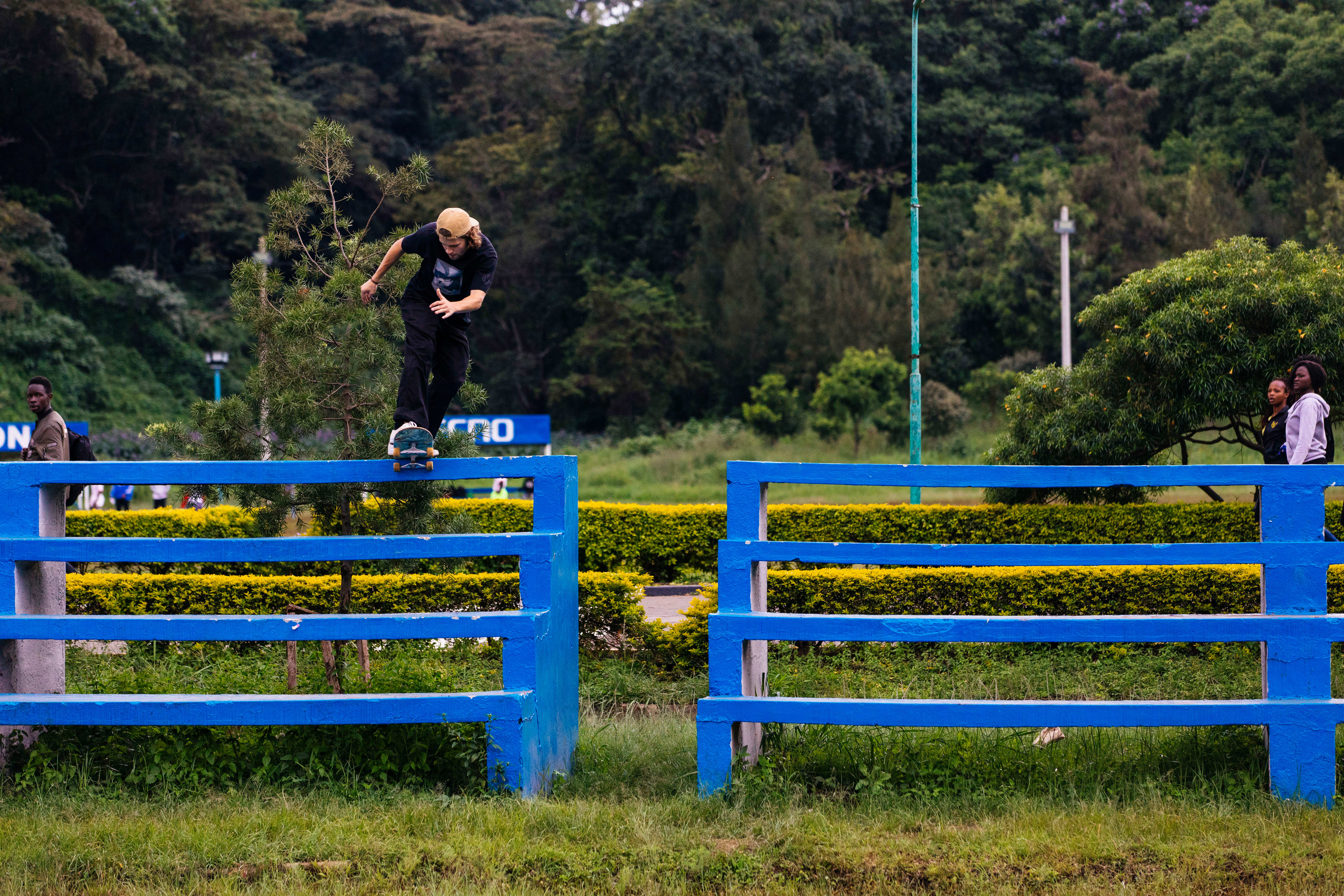 Samuel Mwangi and Ezra Nyongesa – everyone calls him Balo, though – proved constant companions for Jaakko Ojanen, Chenai Gwandure, Yann Horowitz and Jackson Pilz as our joy bus spent a week rolling around with the skate scene of Nairobi. Sam even shot Balo’s front board photo from this feature on his first try with a camera. Fast learner!