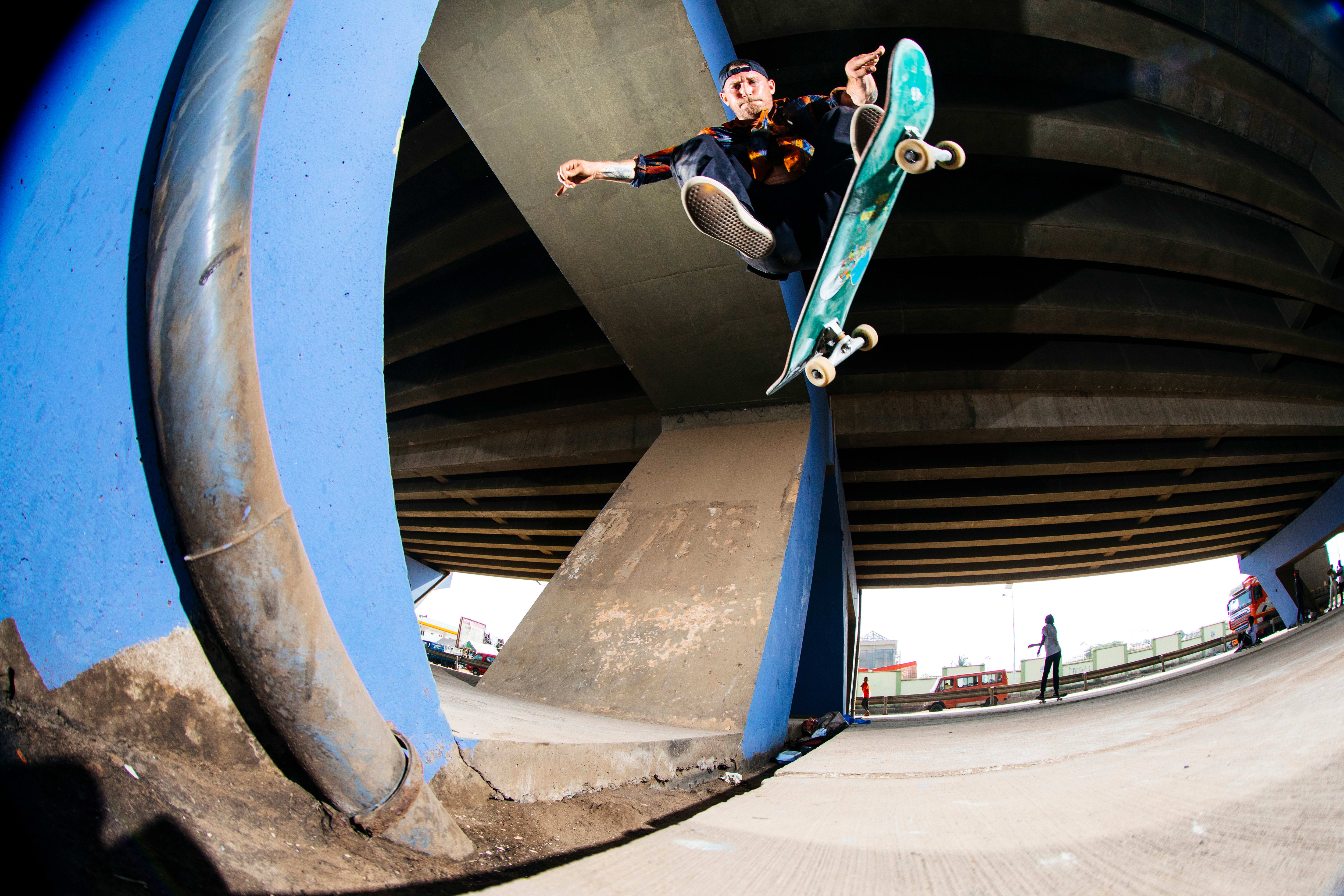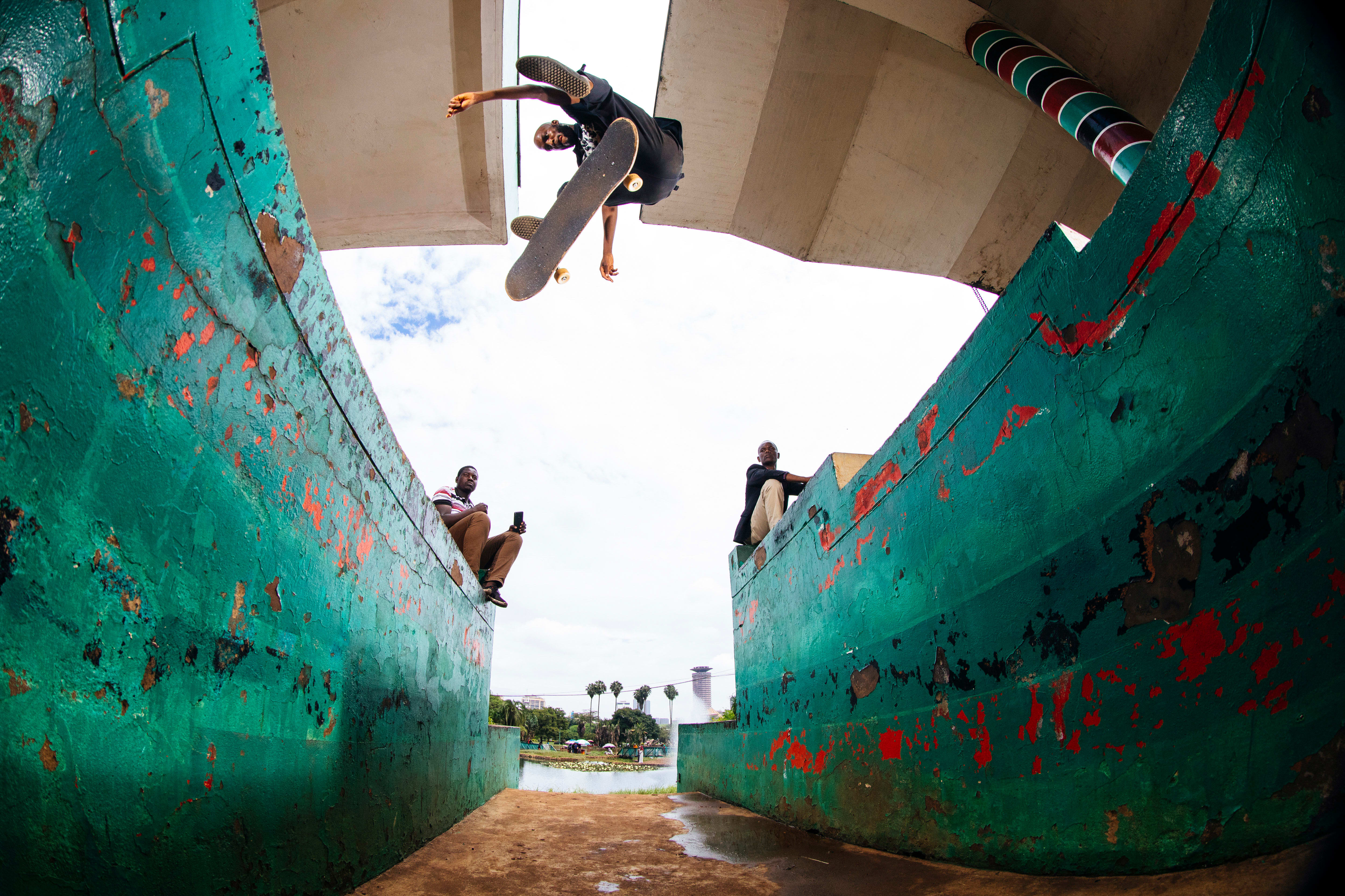 How about this: George is a skater who helps run skate camps at an educational orphanage where the country’s first skatepark resides. Think about that for a moment. Children sleeping on the streets are by no means uncommon in Nairobi, and George introduced us to two young rippers who once slept right by the local skate spot – and started skating as a result. With George’s introduction of skating into their lives, The Keedz (‘the pair’) are off the streets, enrolled in school, and ripping.