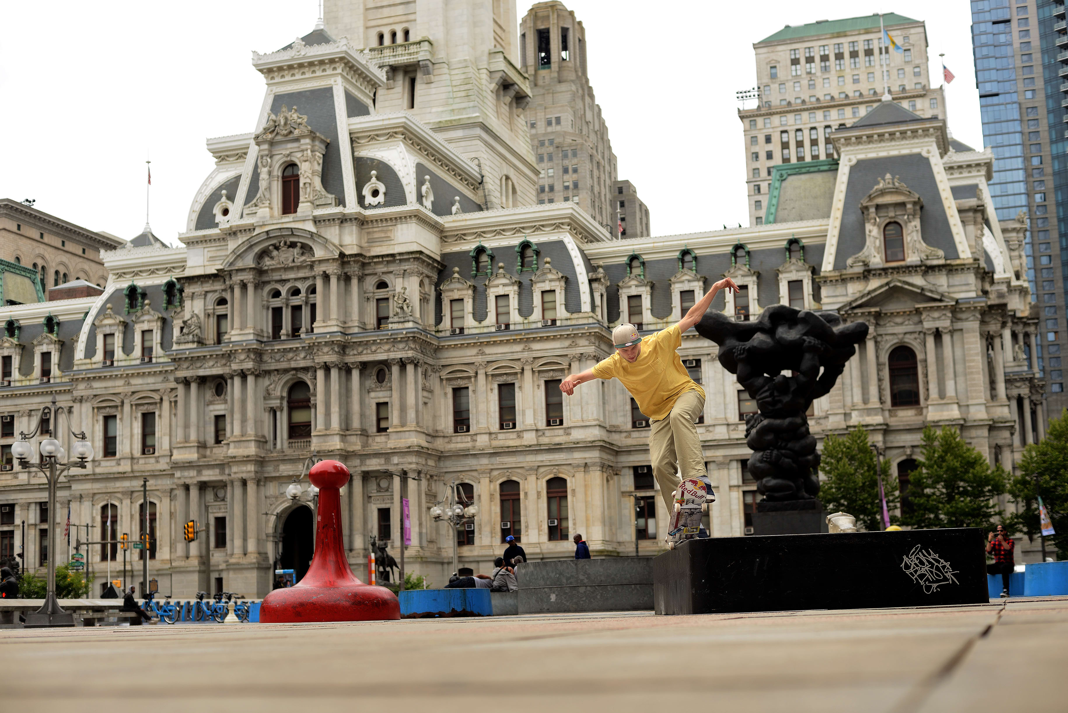 Returning to his Pennsylvania roots, Bam invited Madars and the ripping Loy brothers, Ethan and David, to check out some of his old stomping grounds, like Philadelphia’s iconic Love Park. That was followed by a trip to his brand-new indoor park during an open-house skate party with some of the Westchester locals.
