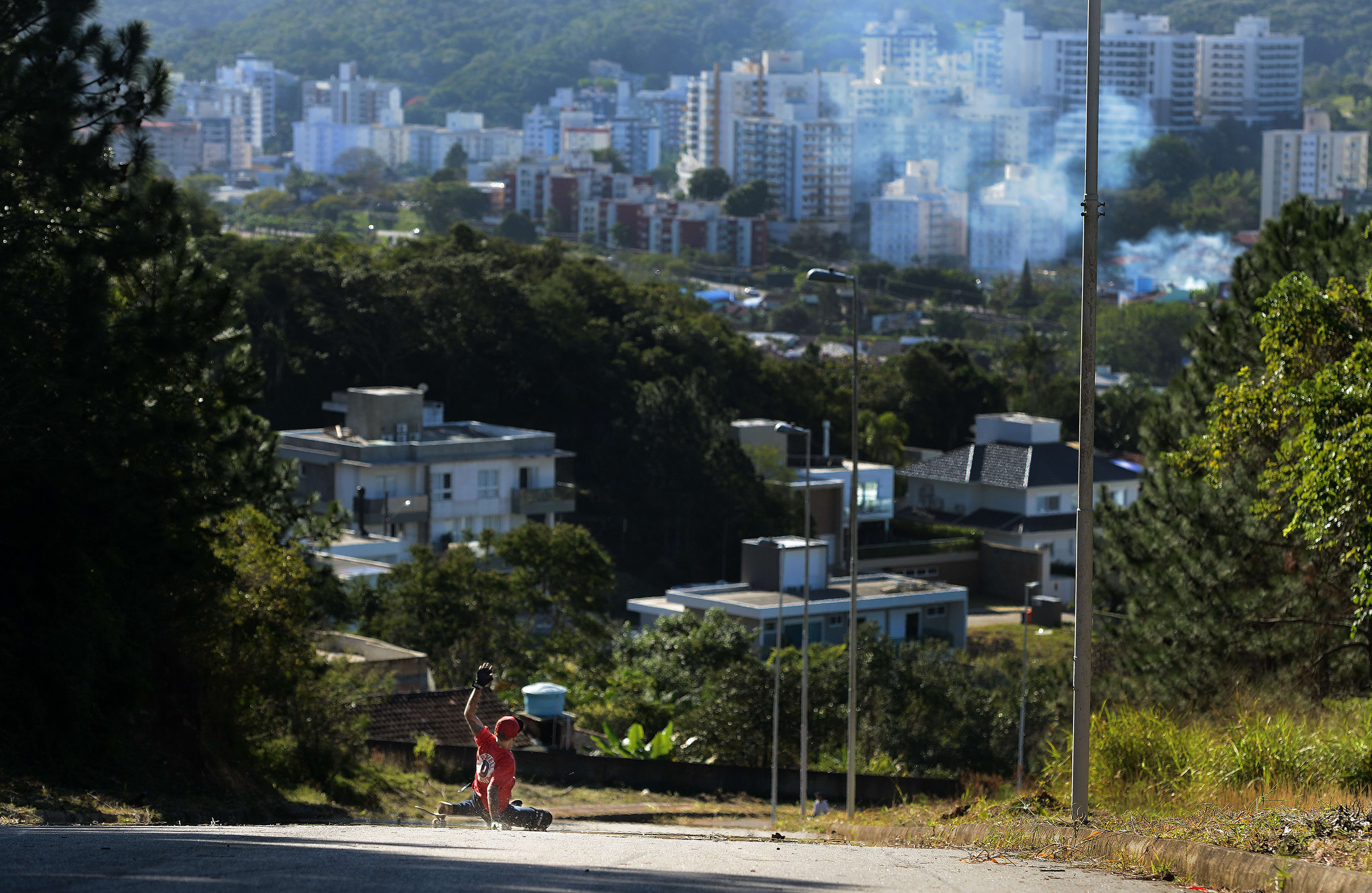 As you may already be aware, Pedro Barros hails from here, a product of the backyard bowl culture that prevails in the pousadas dotted around the island; but another branch of skating thrives on the steep and daunting downhills in Santa Catarina state: slide culture. Sergio Yuppie is its leading light. As Sergio explains to Madars, this skating subculture exists as an offshoot of downhill skateboarding and was pioneered by Cliff Coleman who invented the downhill slide using a gloved hand as a pivot point.