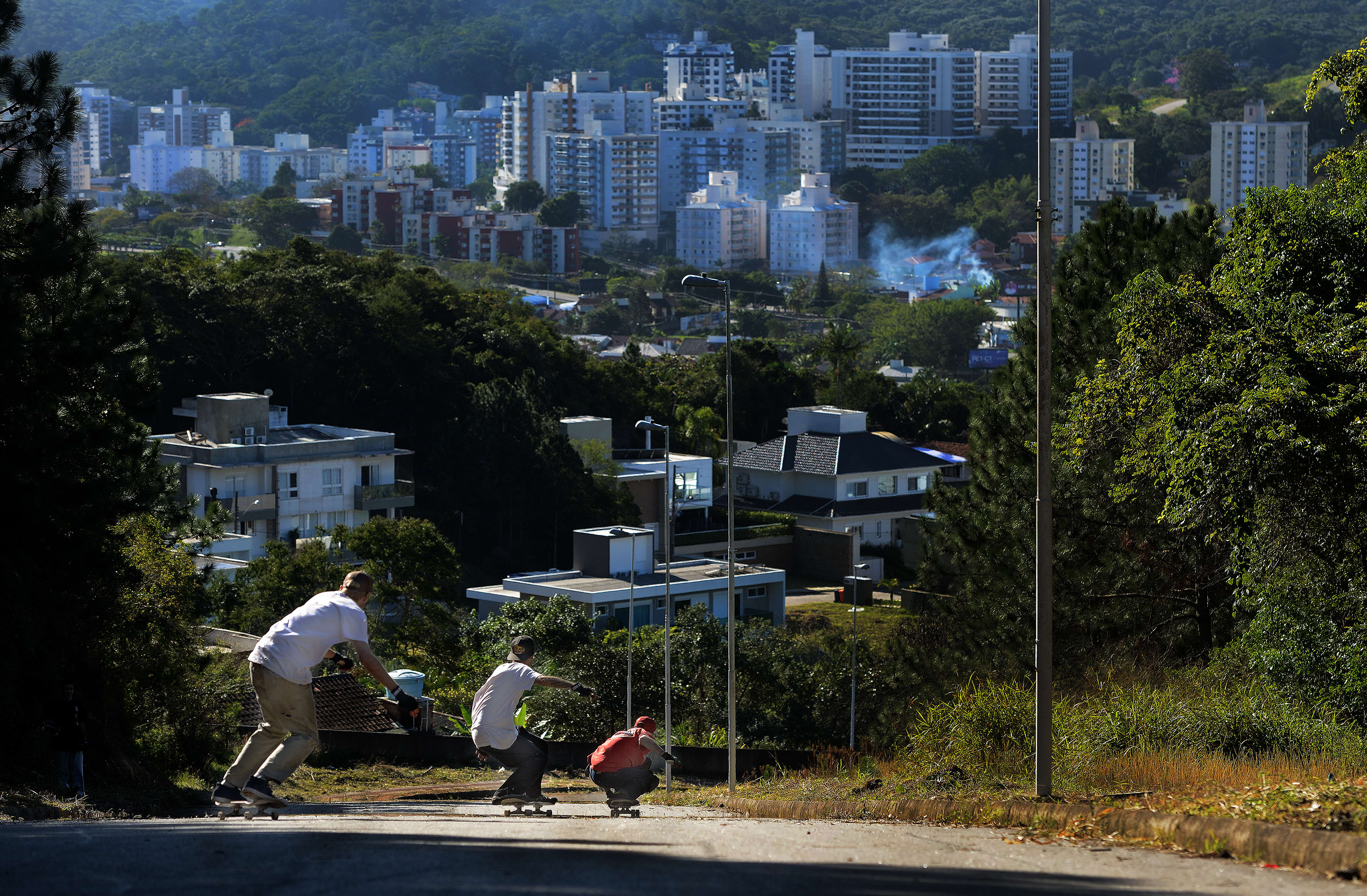 Powell Peralta’s 1985 skate classic Future Primitive brought downhill sliding to a wider audience, and the highly dangerous combination of high speeds and tricks began to develop its own international circuit. Sergio Yuppie dominated that circuit for his entire professional career. With his entire family, they continue to session the hills of Florianópolis daily from their specialist basecamp skate shop Curva De Hill.
