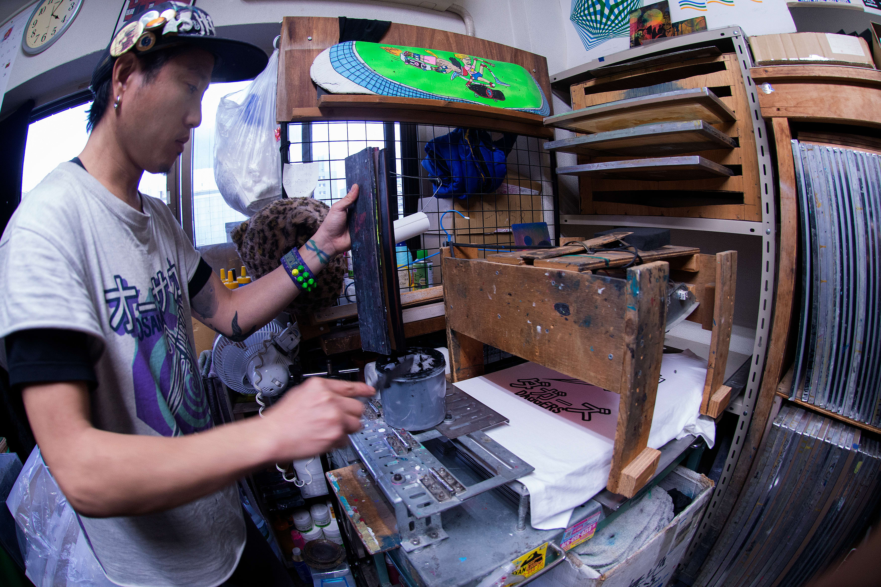 Evisen, FESN, Gou Miyagi and the Lenz videos all constitute part of this cultural splinter movement, but foremost among their number are the Osaka Daggers, a rag-tag cabal of skaters and like-minded creatives who gravitate around the orbit of Osaka's Triangle Park skate spot.