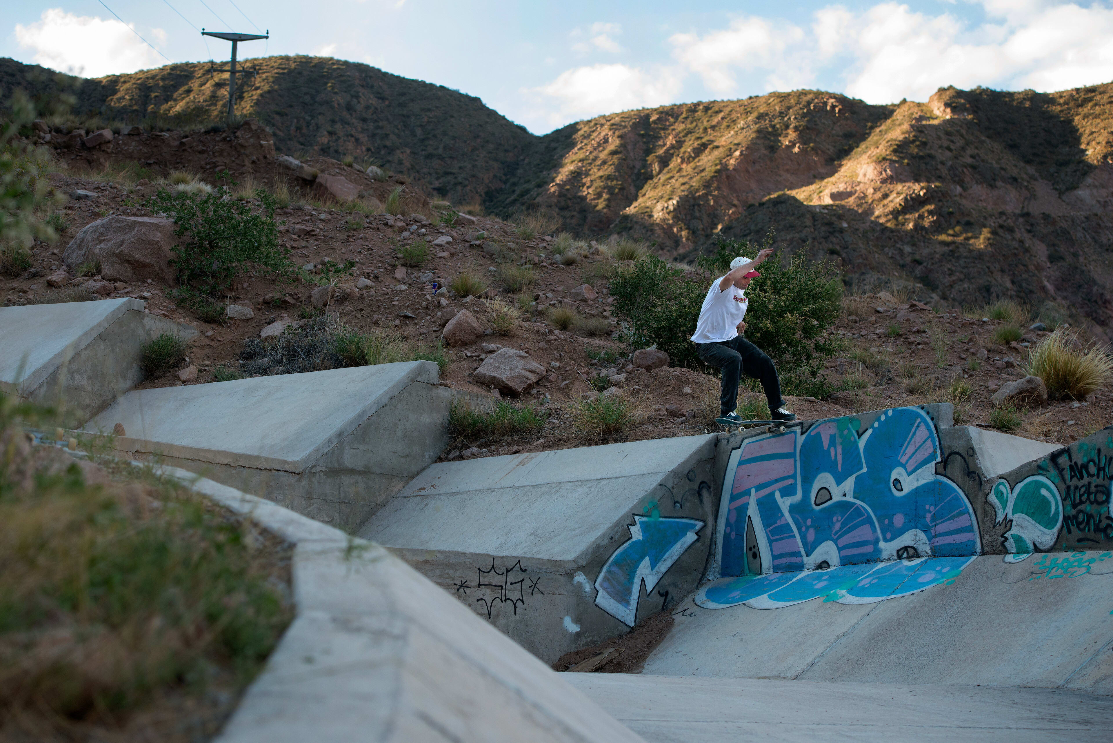 Their skate philosophy is a throwback to the romance of the open road that American Beat novelist Jack Kerouac depicted in his 1957 book On The Road. Madars had to find out more about what makes these rippers tick, so he joins them on a skate mission of nearly 500km through Argentina to get a sense of their skateboarding life lived with just one single rule: no hotels.