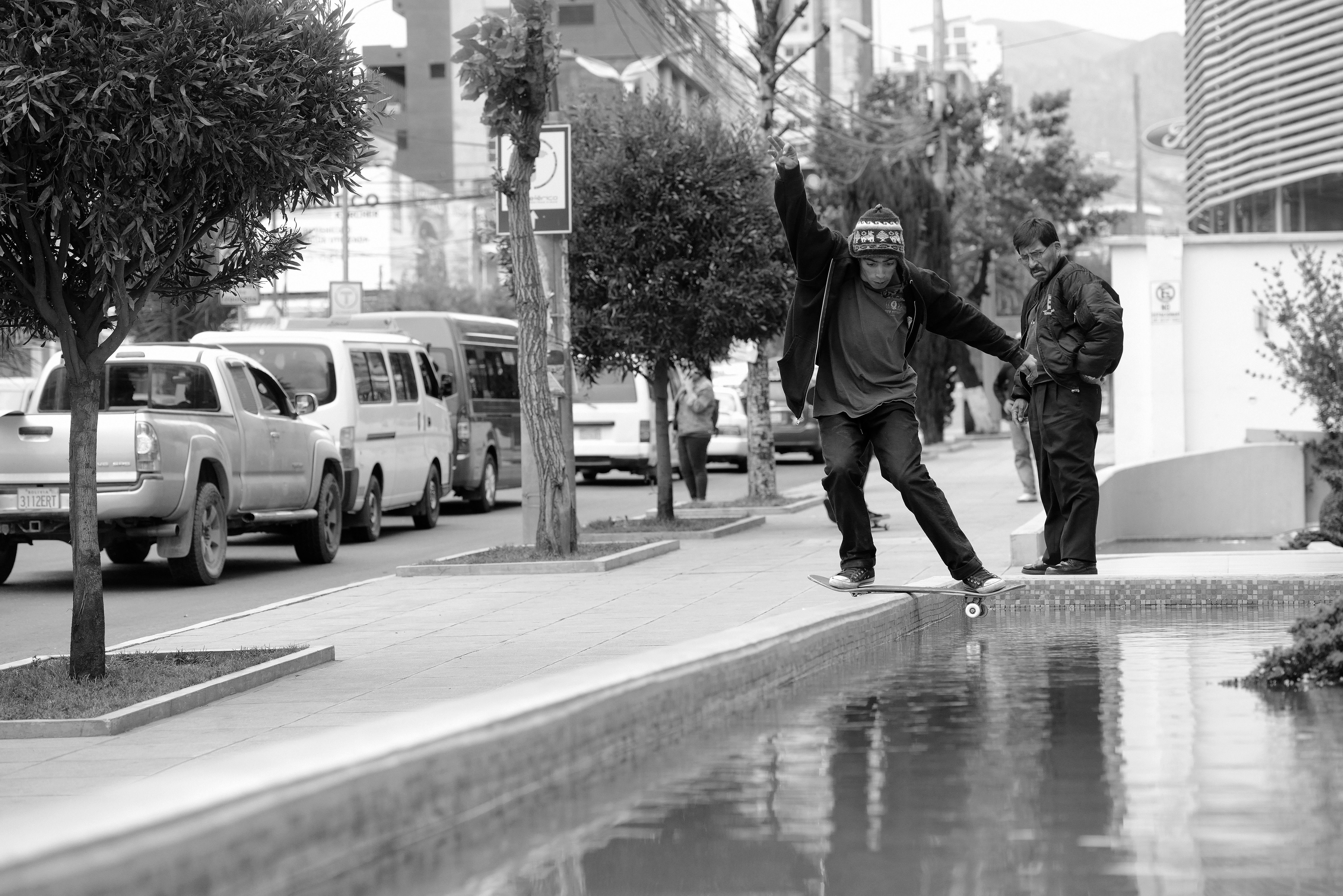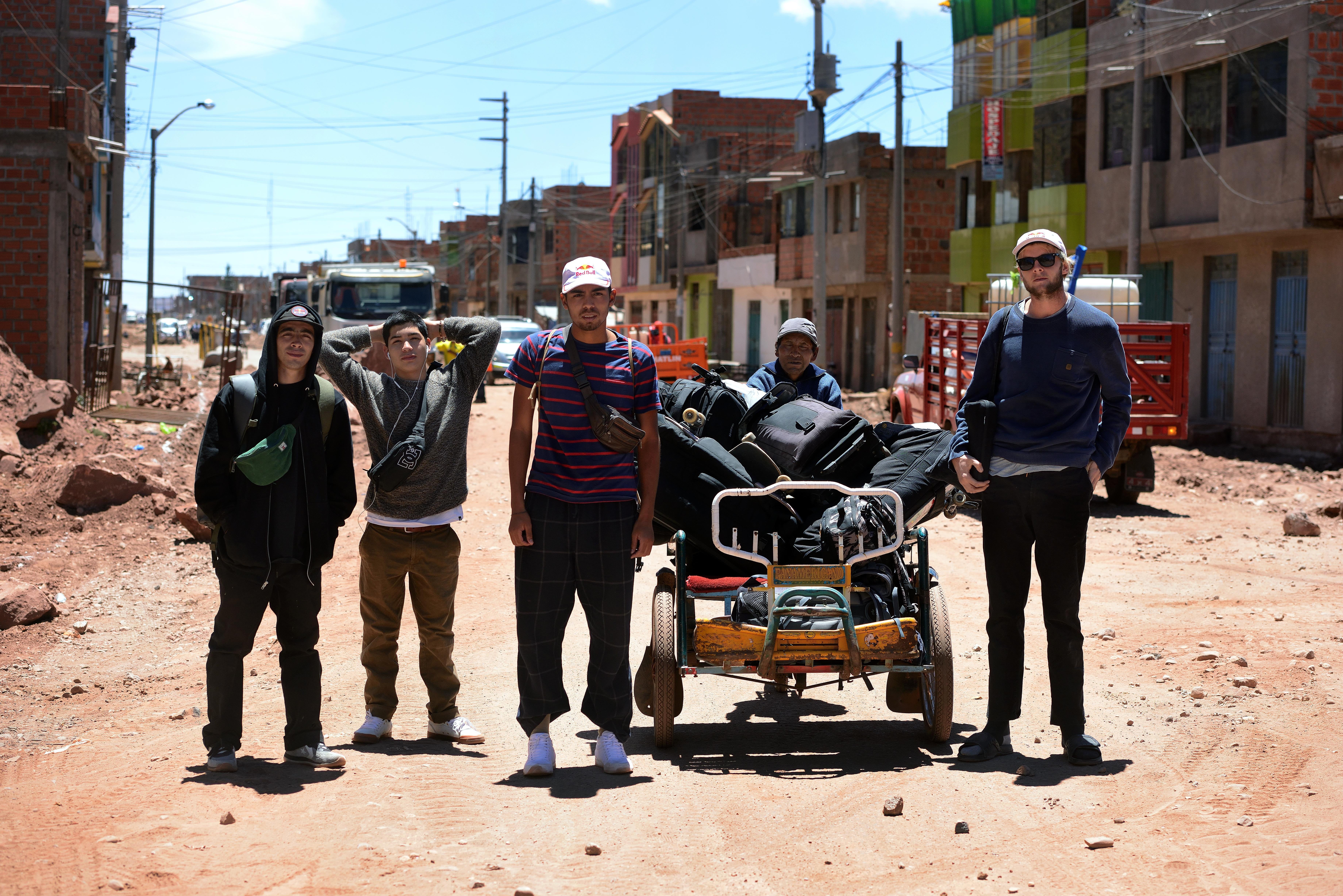 Madars Apse, Thaynan Costa,Angelo Caro and Milton Martinez were ready to skate La Paz, the highest capital city in the world – but first, we needed to go through customs.
