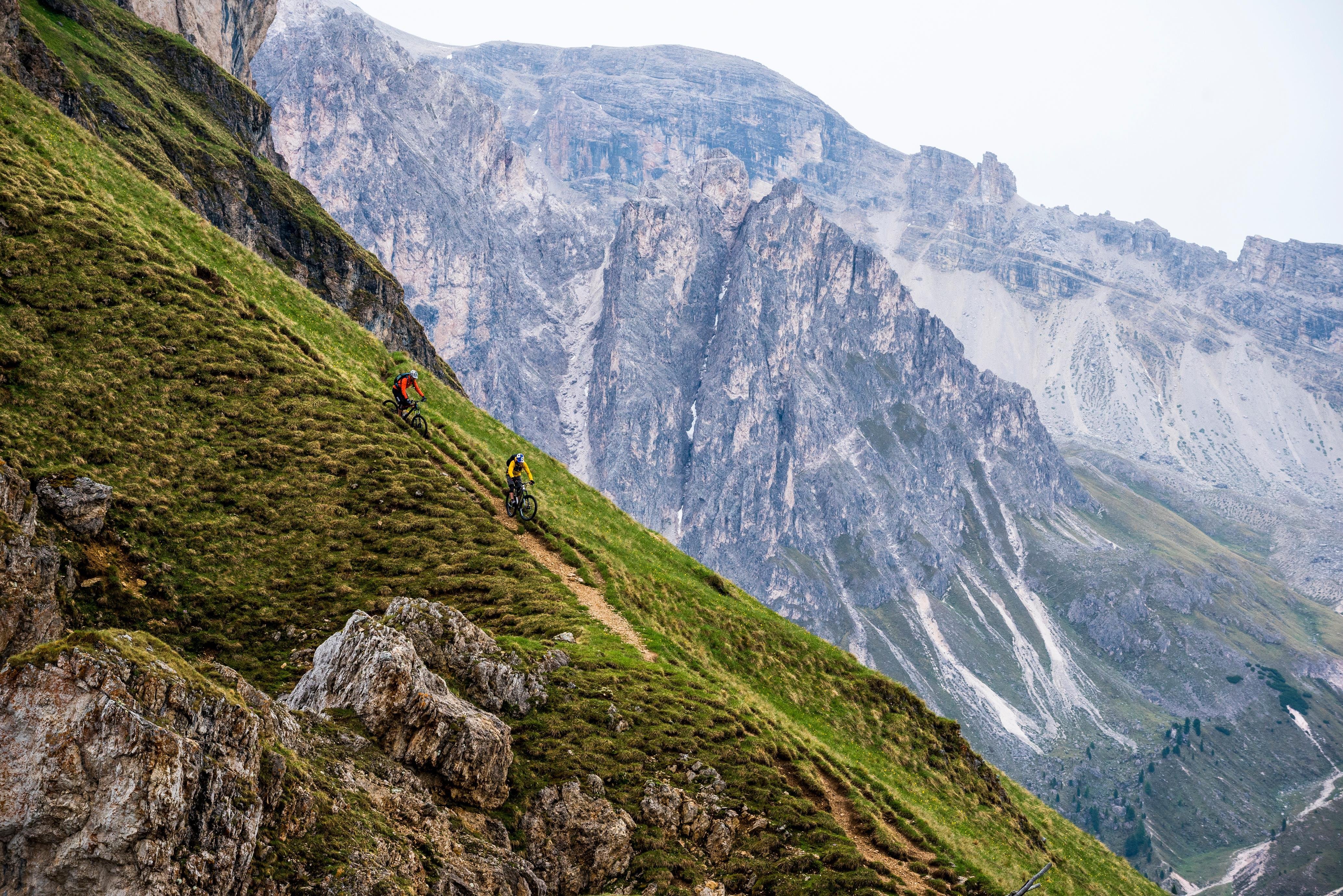 A 20-minute push up to the Vicenza Refuge, nestled among vast, vertical rock faces, delivered a pasta re-fuel that gave us the energy for the next 20km of traverse and descent to Campitello di Fassa. A lap on the Col Rodella cable car packed in an extra 1,000 m of descent down a loamy enduro trail, before a second ride up the same lift fed us to one final, fast singletrack descent back to the Passo Sella and a well-earned apple strudel.