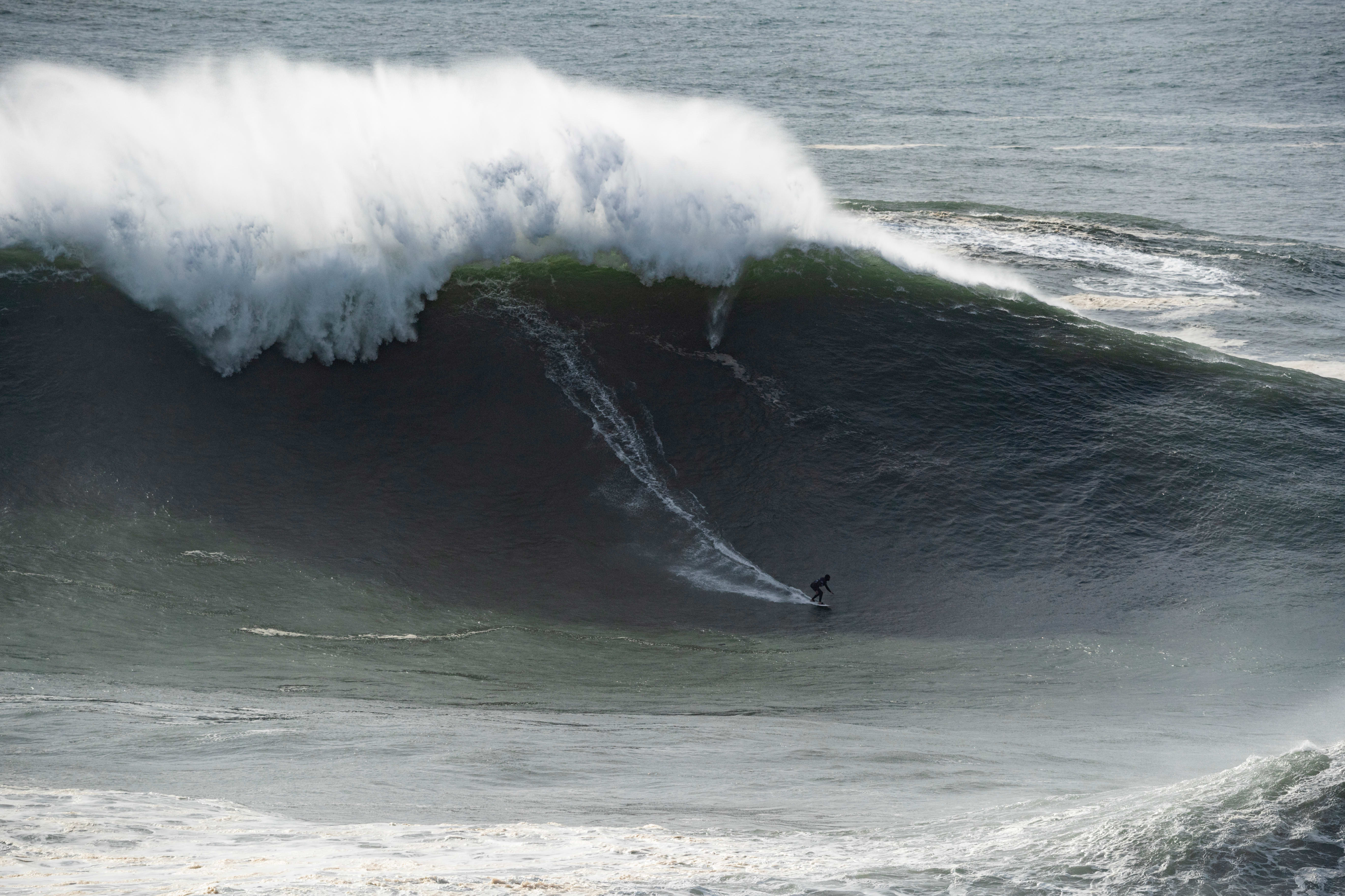 Dupont was also more than prepared for the historic day – along with her partner Fred David, Dupont now lives in Portugal for half the year, just so she can surf Nazaré whenever it’s good. That commitment paid off this past November, when Dupont rode what was up until that point considered to be the biggest wave ever ridden by a woman surfer – but on Tuesday, she just might have edged out her own record with a perfectly surfed left-hander.