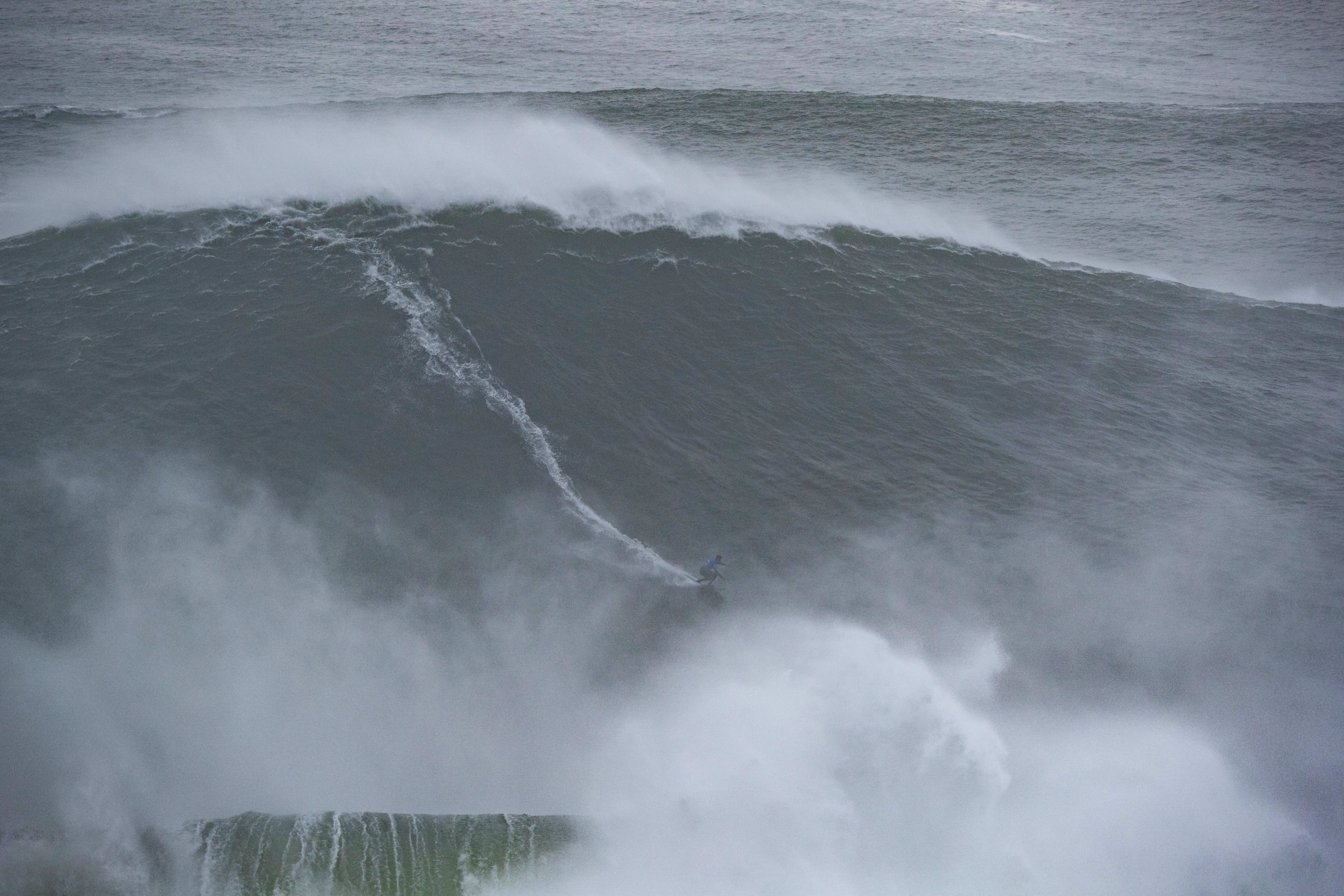 Following the so-called winter storm Ciara, which blasted through Belgium, Britain, France, Germany and Poland with huge winds on the weekend of February 8-9, the Portuguese coast was blanketed with calm winds and huge, clean swell – the perfect formula for an epic day at Nazaré.