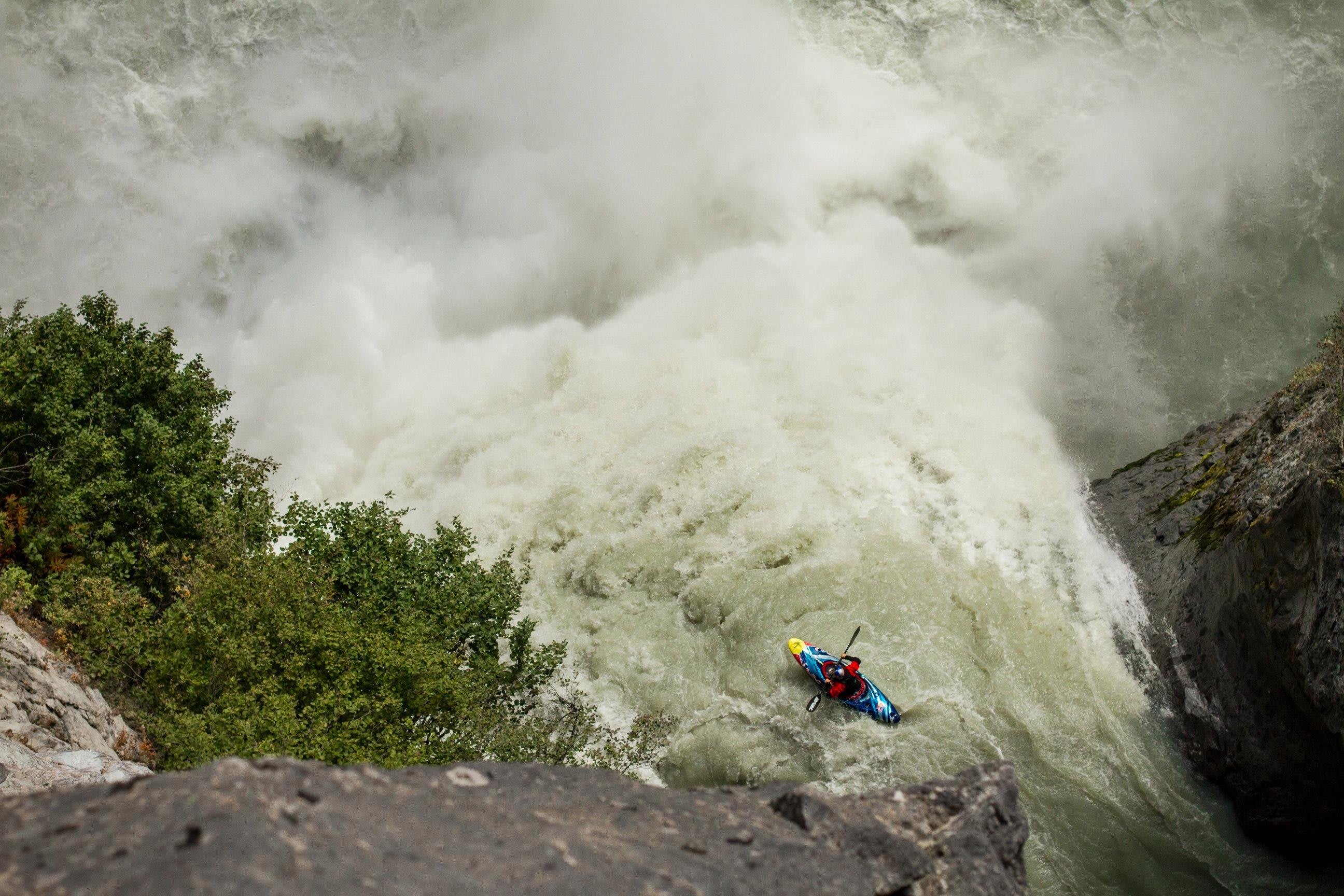 Keyhole Falls isn't your typical waterfall. The 3,000-cubic-metre-per-minute flow shoots out of a massive rock wall situated on the Lillooet River in BC, Canada. Subject to constantly high water levels from coastal mountain snowmelt, it's nearly impossible to see, and tough to scout. Simply getting to the waterfall is a challenge – you can't paddle into it, as the river above Keyhole Falls is impassable. Setting up for the drop means abseiling in from 100m above.