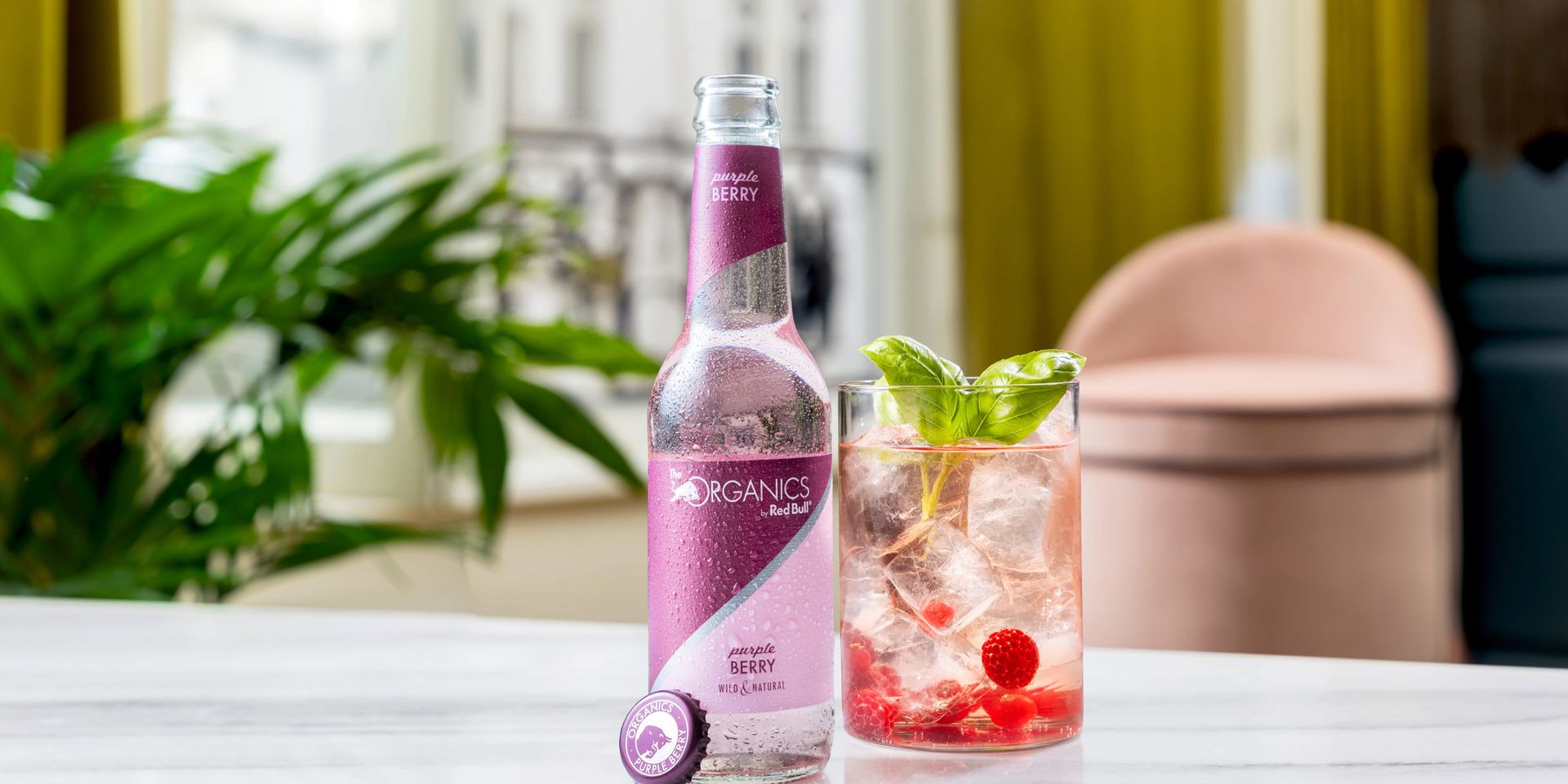 Top up with ORGANICS Purple Berry and garnish with a sprig of mint