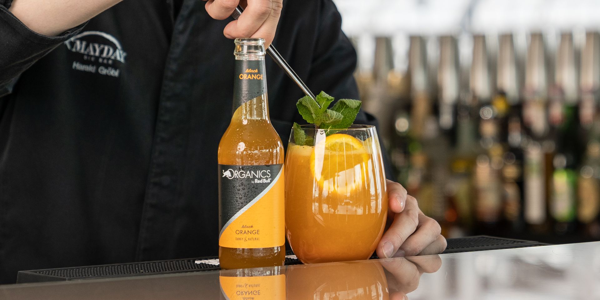 Orange Kiss - a non-alcoholic cocktail with blood orange juice, fresh mint, elderberry syrup, ORGANICS Black Orange and more. Discover the recipe now!