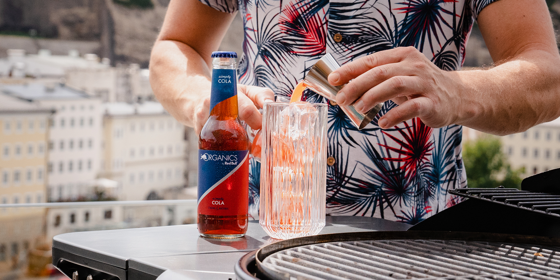 TheARTer - a refreshing mocktail with ORGANICS Simply Cola, freshly squeezed blood orange juice and rhubarb puree. Discover the recipe now!