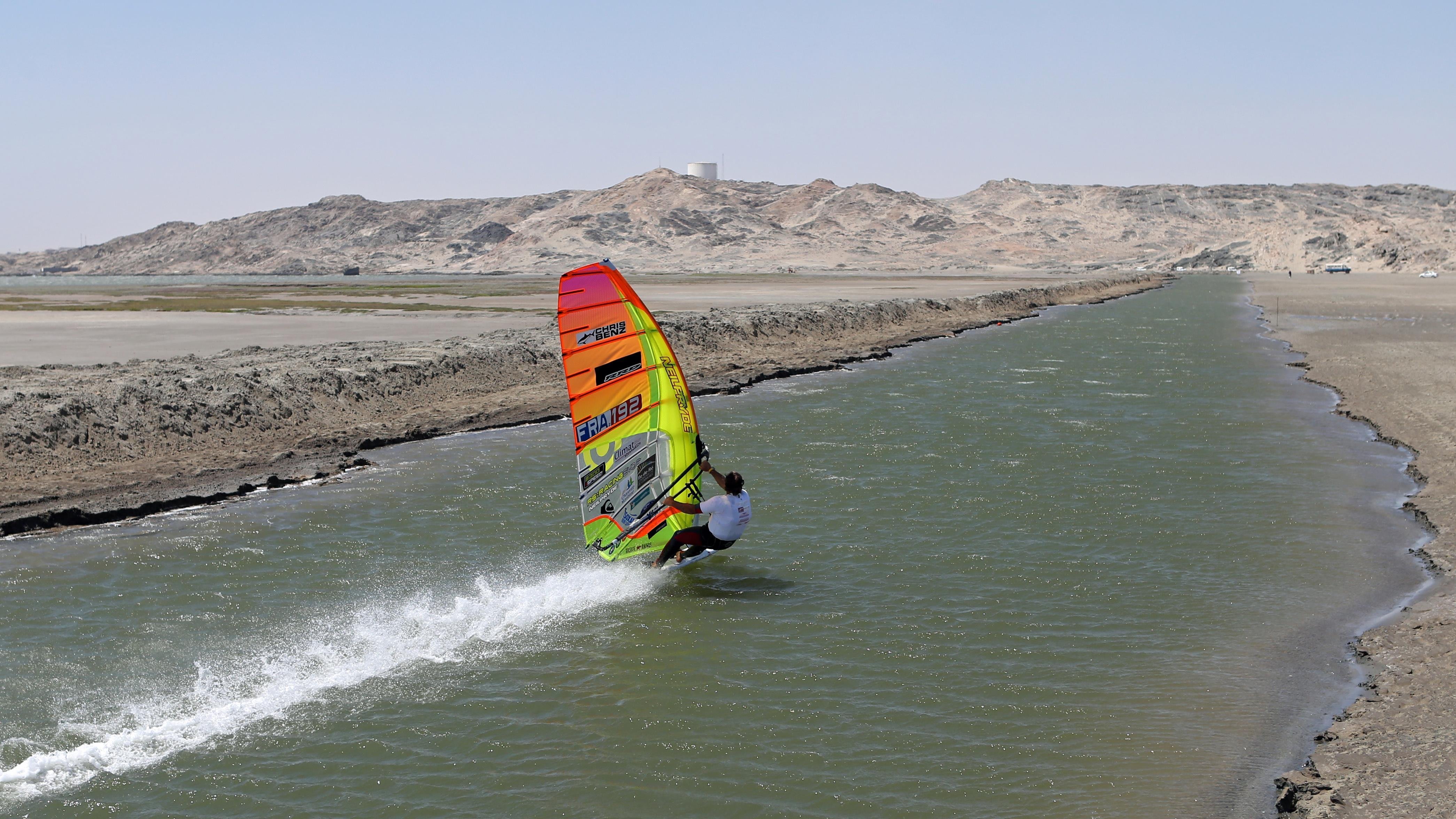 The first challenge is finding the location – the ‘ditch’ at Luderitz offers optimum conditions for speed sailing. What they’re looking for is strong wind to power the sail, and extremely flat water to control the board. Those two things come together every year in the late autumn as westerly breezes blow in from the Atlantic.
