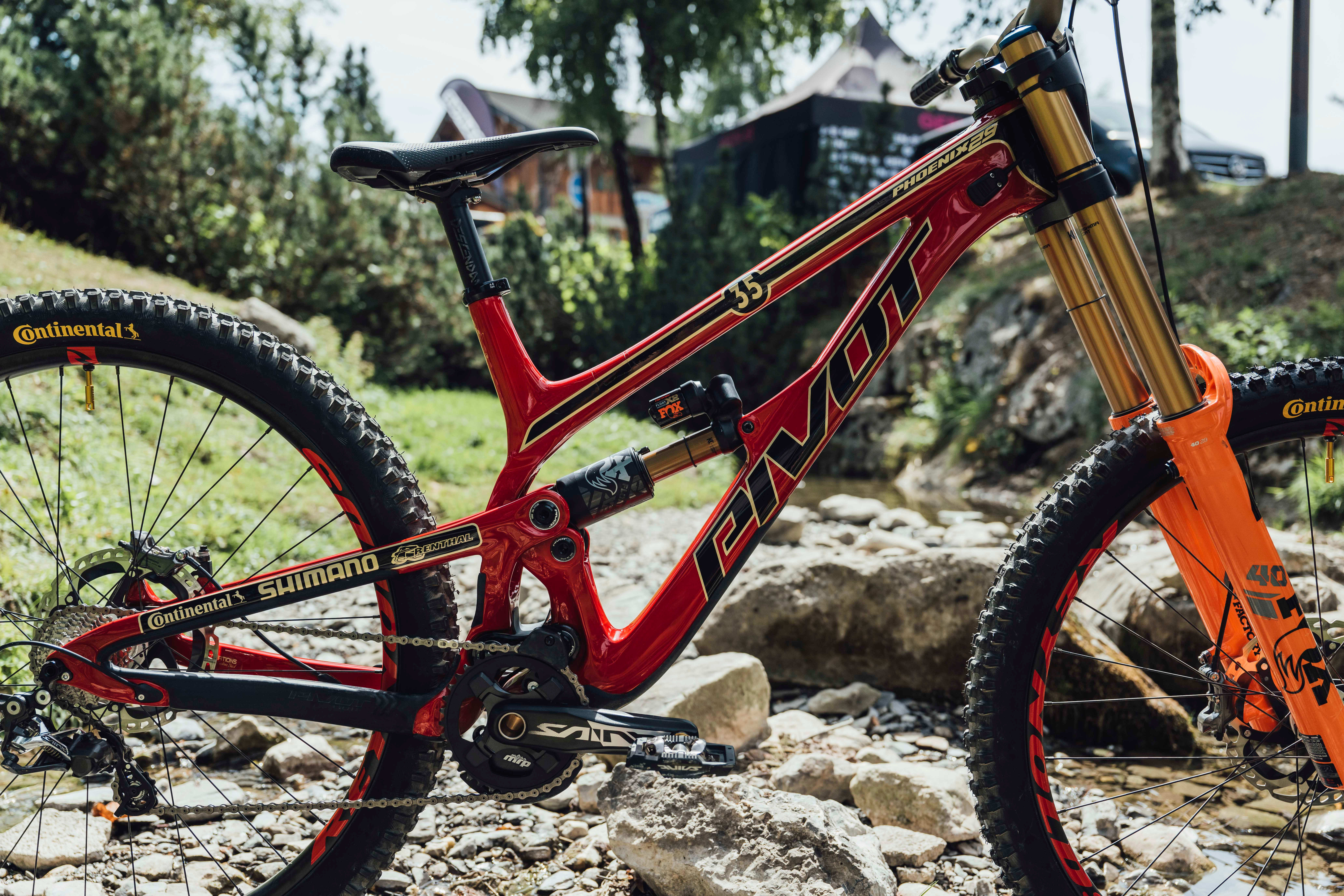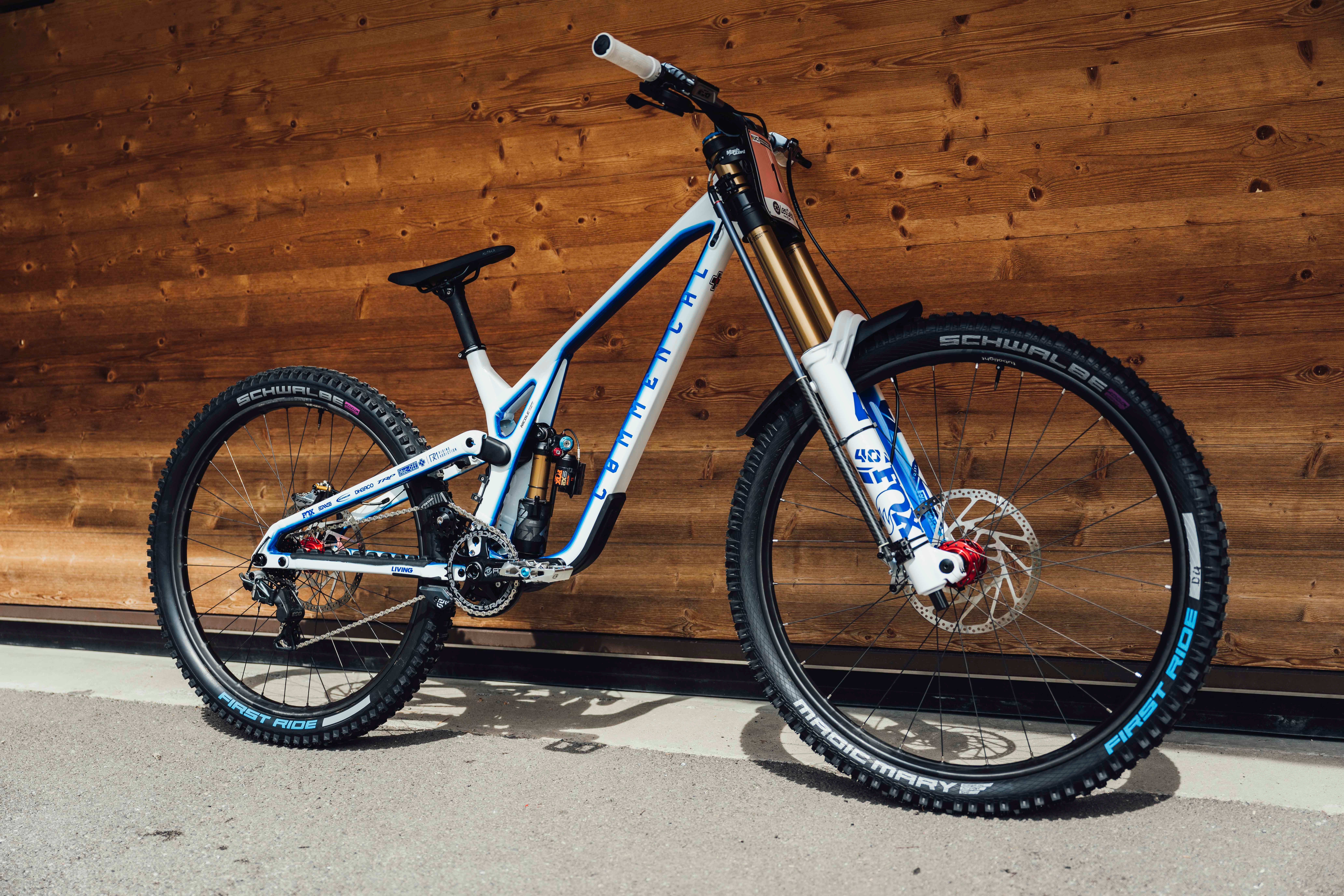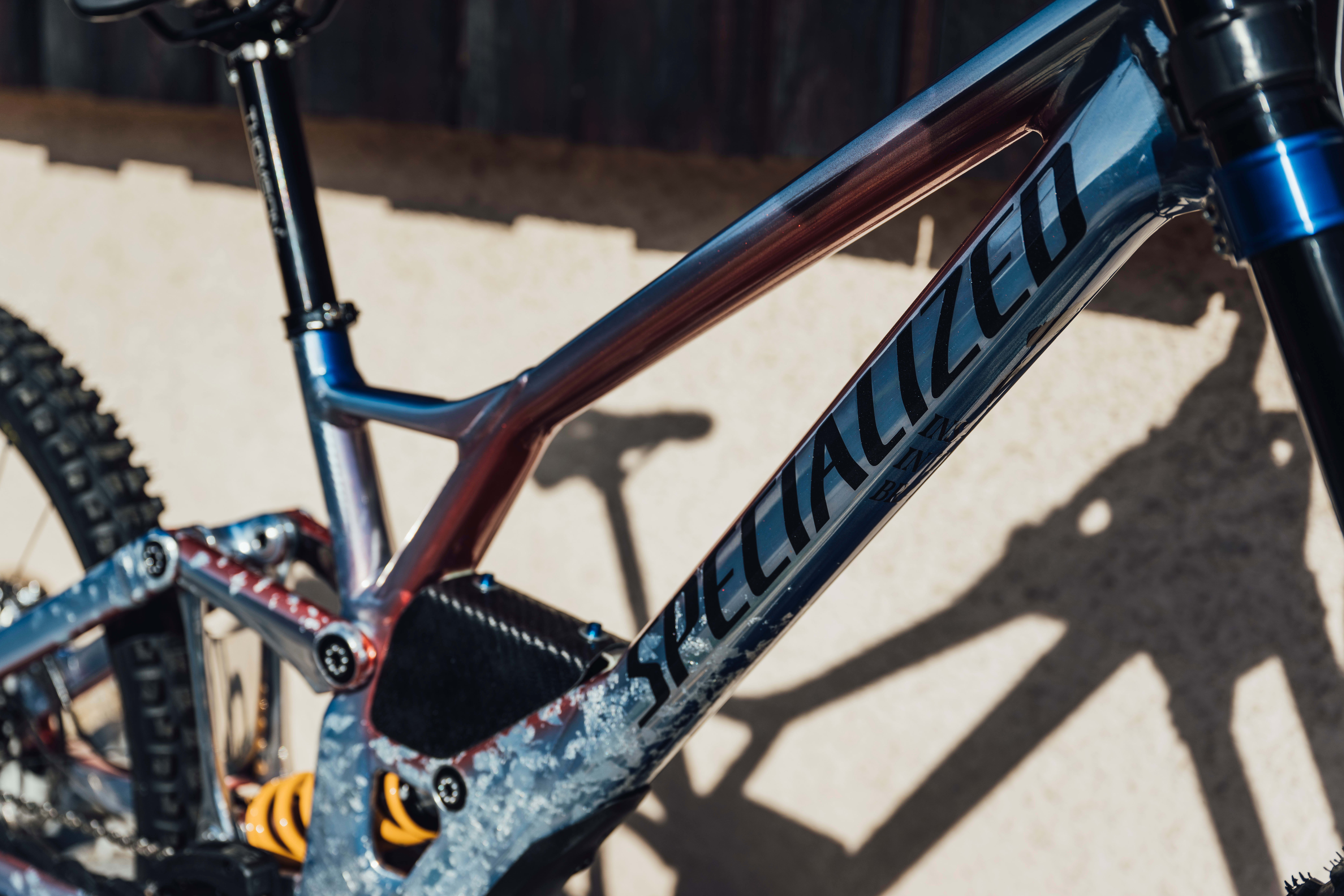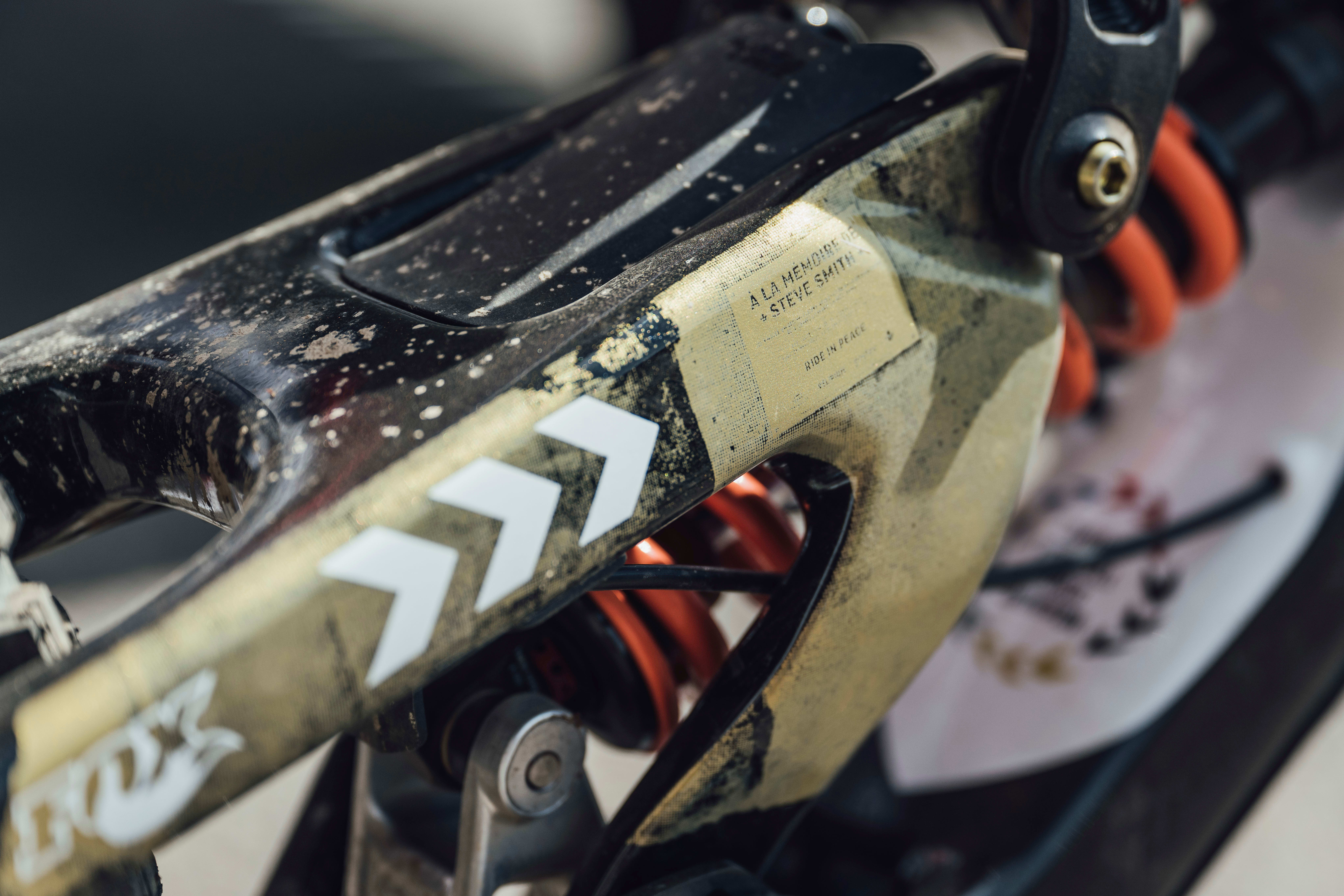 Vali Höll's bike is a deep red to match the red of the Austrian flag, while Jackson Goldstone's bike includes a mark of respect for countryman Stevie Smith