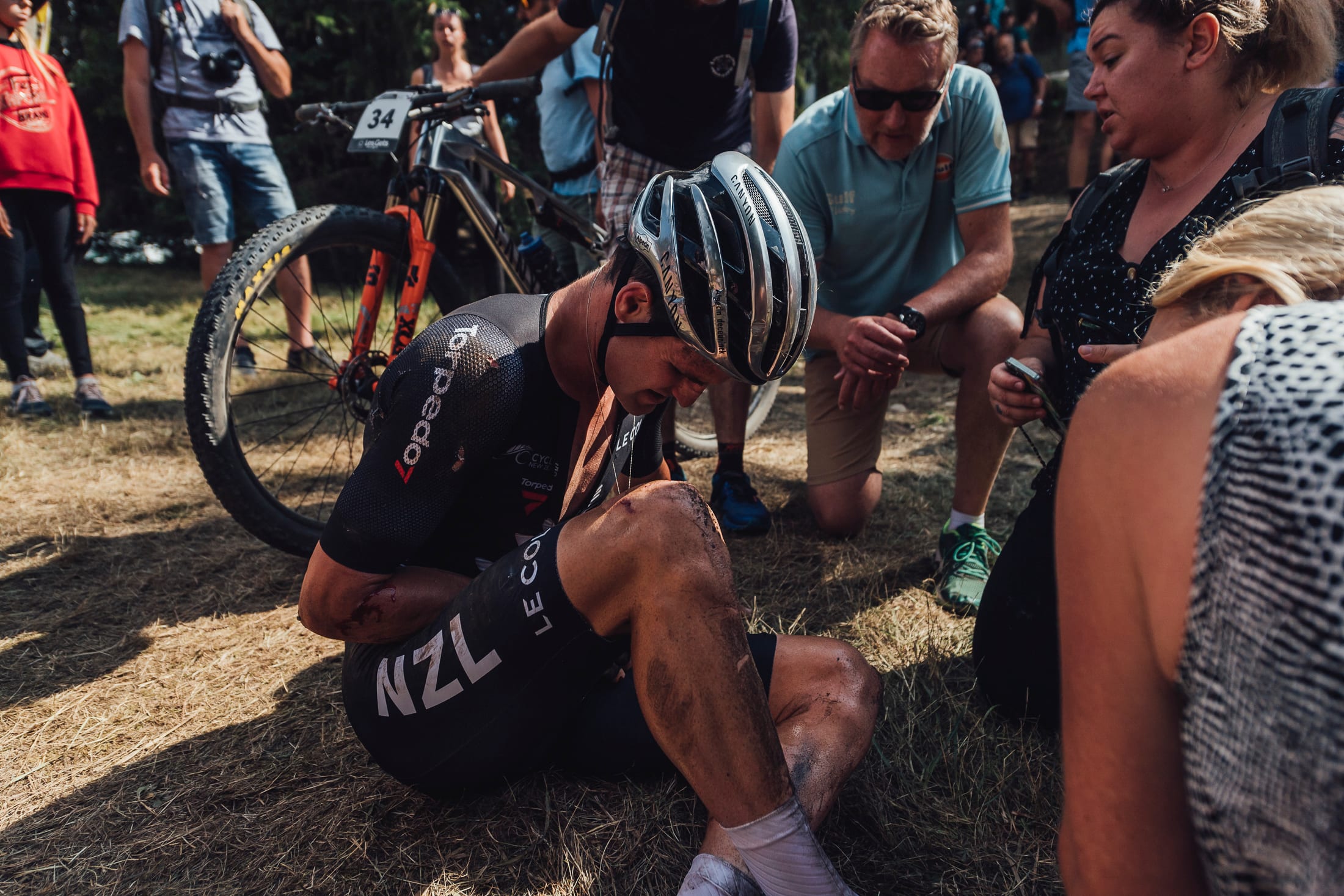 Sam Gaze crashed out while in the lead group early on