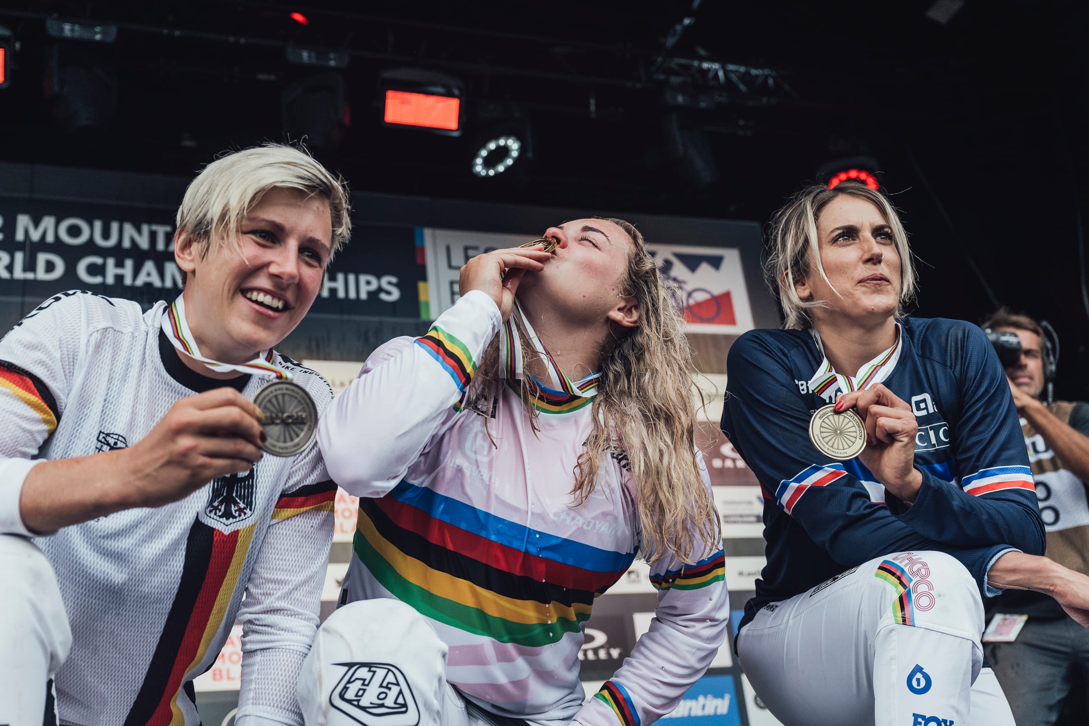 As the dust settled on a dramatic women's final, Höll admitted that she wasn't quite sure how she won this Les Gets World Championship but sometimes it's best not to question the ifs, why and buts. Germany's Nina Hoffmann had been sitting in the hotseat with a time that looked hard to beat on a blown-out dusty track, but Höll managed to be inside Hoffmann's time by 0.906s to take the title. Hoffmann had been superfast at the bottom section of the course as it left the woods, and it was here where Höll was losing time to the German, having been up by over 4s on Hoffman's time at the third intermediate split further up the course.