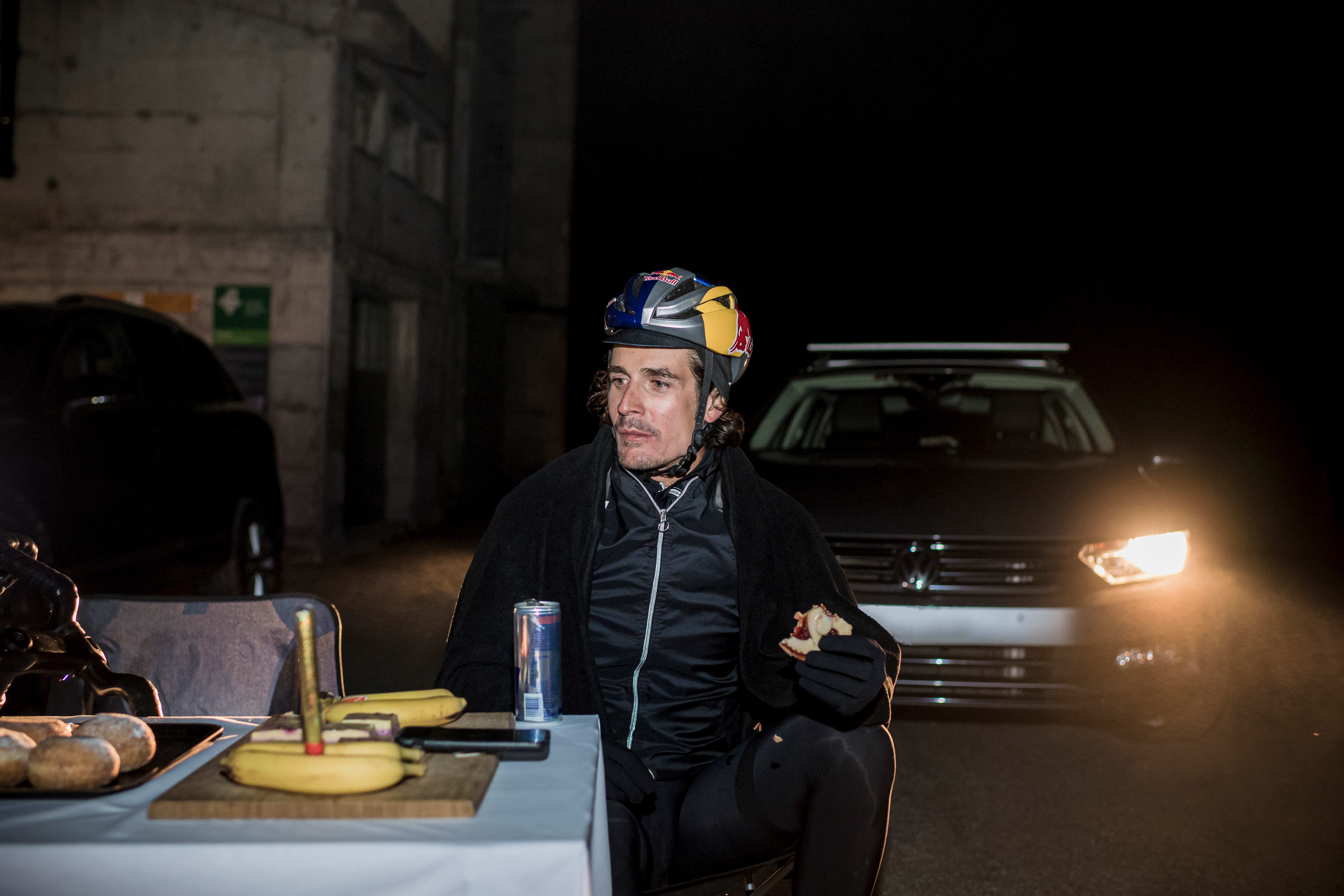“As soon as I was on the slope, thick fog came up. I neither looked back at what I had already achieved nor up to see how far it was, I just focused on the few metres in front of me.” It’s hard to keep motivated with three passes already in the legs on a section he doesn’t like. “It was gruelling,” he said, but yet again he focuses on one more pedal turn, then another, then another, until he reaches the top.