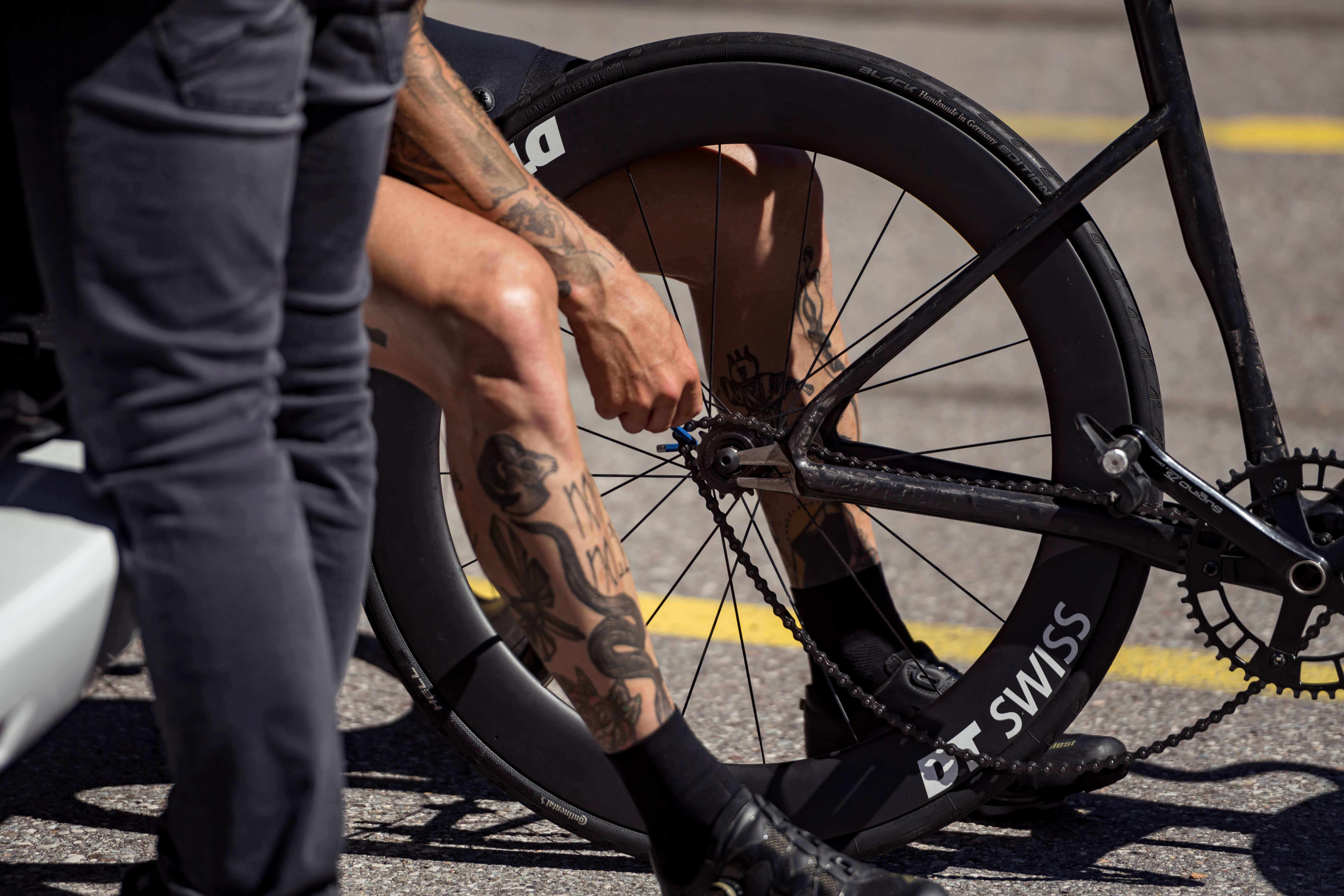 Riding a track bike up such a climb is “like an hour on the leg press in the weight room,” Seabase explains. He pulls hard on the handlebars, presses into the pedals with everything he has, and suffers his way up. To manage the metal side of such an undertaking, he divides the route into smaller and smaller sections. He thinks only about the ride to the next stopping point, or getting through the next hundred metres, reaching the next hairpin bend, or even just completing the next turn of the pedal. These mental tricks help him keep going until he finally makes it to the top of the most famous Alpine crossing in Switzerland at 2,106m above sea level. His legs are empty, but he knows it’s not over yet.