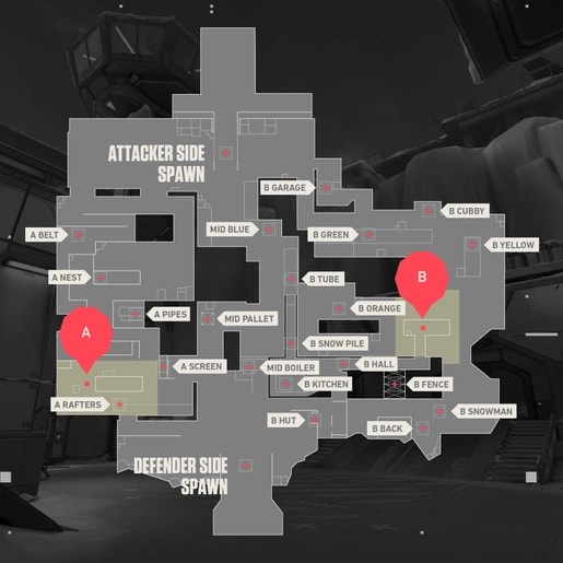 Even veteran players struggle with Icebox, and you'll occasionally see even the most confident of pros freeze up when faced with its icy winds. Icebox is regarded as tough, cold and full of unexpected angles – you really need to embrace new heights to get the drop on your opponents. Despite common perceptions of Icebox, it is actually a fairly balanced map with plenty of opportunity to get one over on the other side. Using vertical ziplines to ascend to the spike sites, perching in nests to hide, and trusting the large horizontal zipline to cover ground with speed, it pays to have a detailed knowledge of this map's layout.
