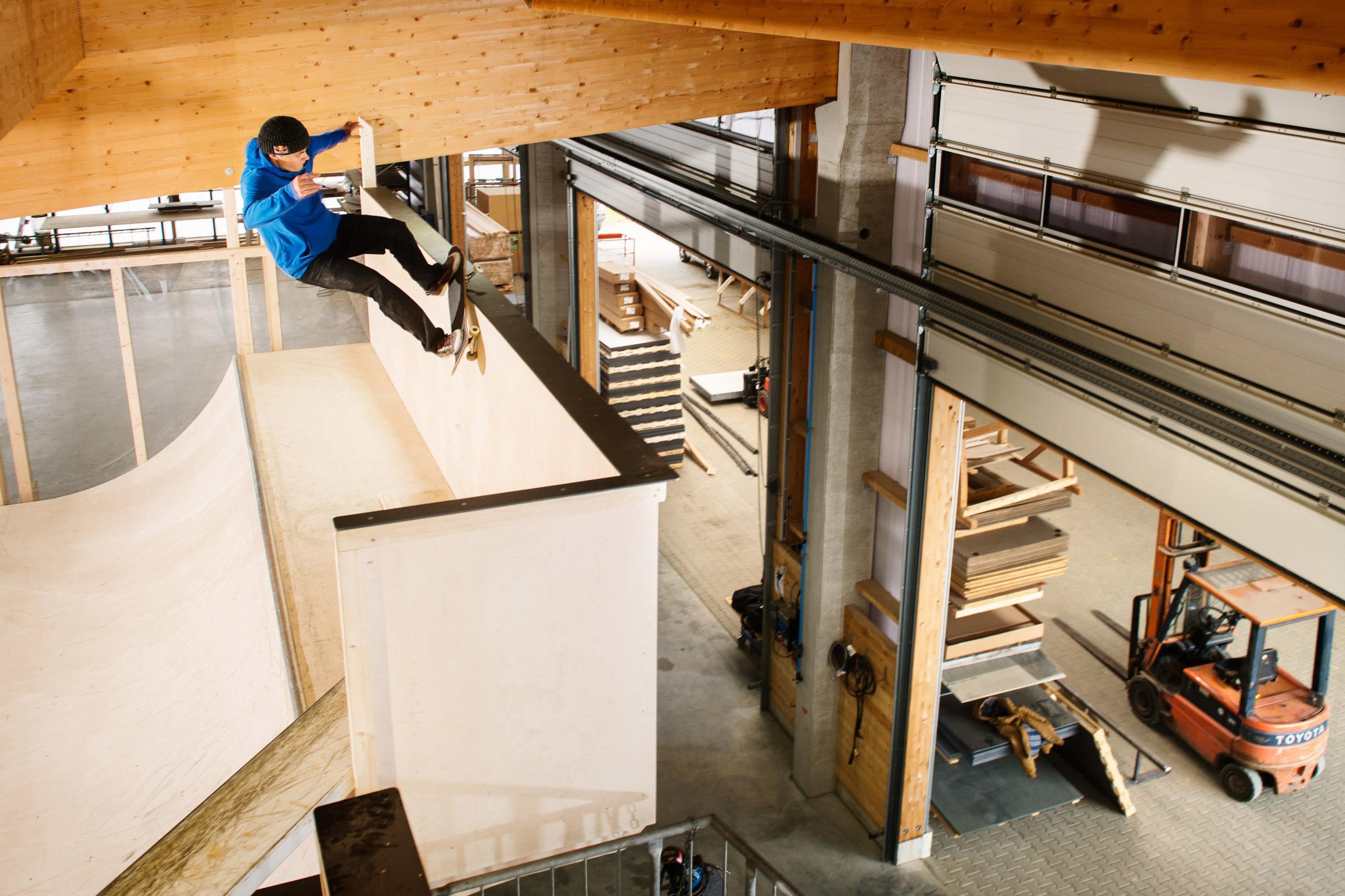 What is less known about IOU’s idea incubator, is that for the pleasure of the crew and to keep the reason for IOU’s existence always in the foreground of their minds, they've built a perfect mini ramp suspended from the ceiling 7m off the ground in there.