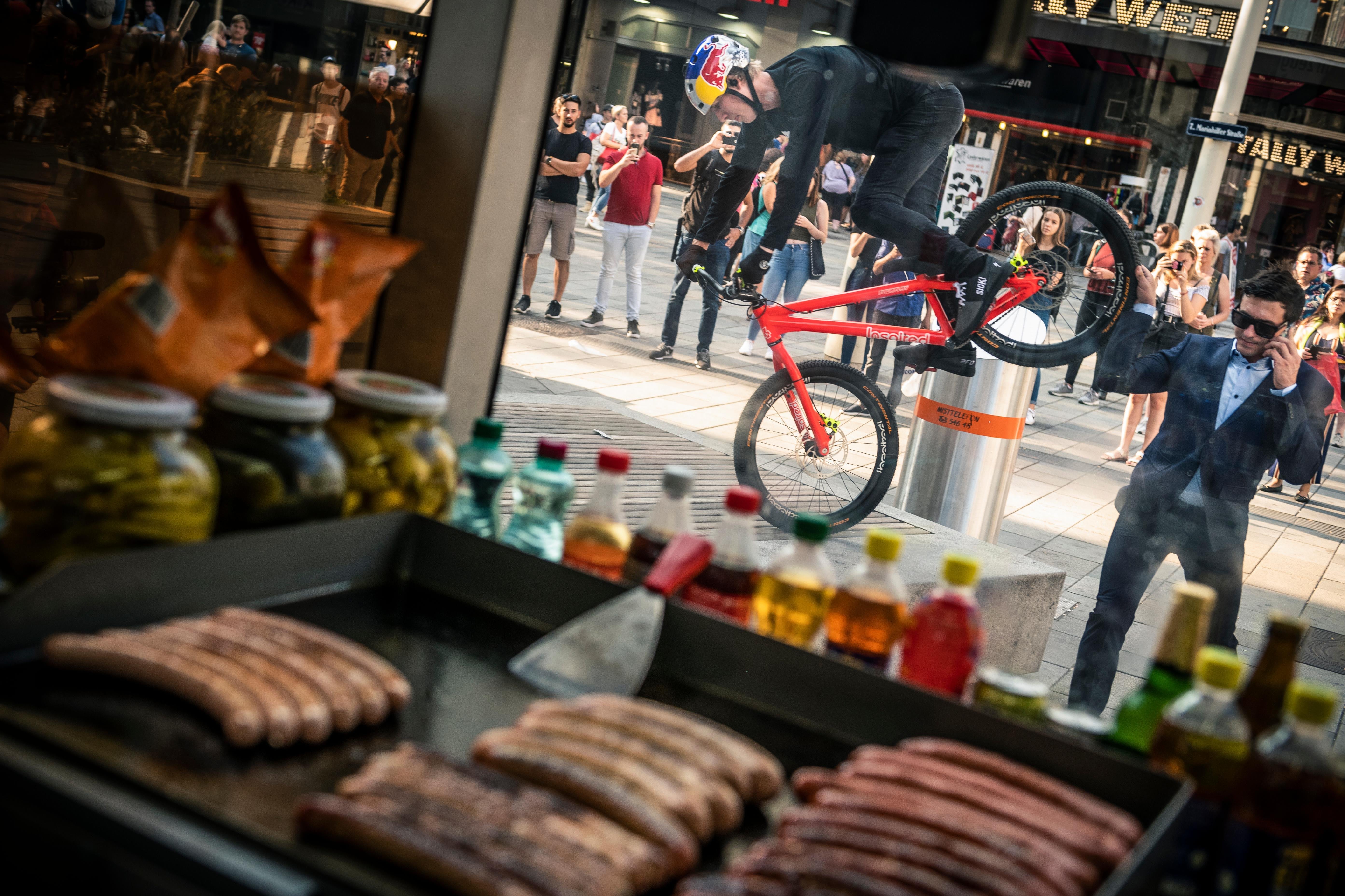 The hustle and bustle of a busy city. In the middle of it all are Fabio Wibmer and his bike, pulling off an urban ride like no other. He’s in his own world and he only follows one law – Wibmer’s Law.