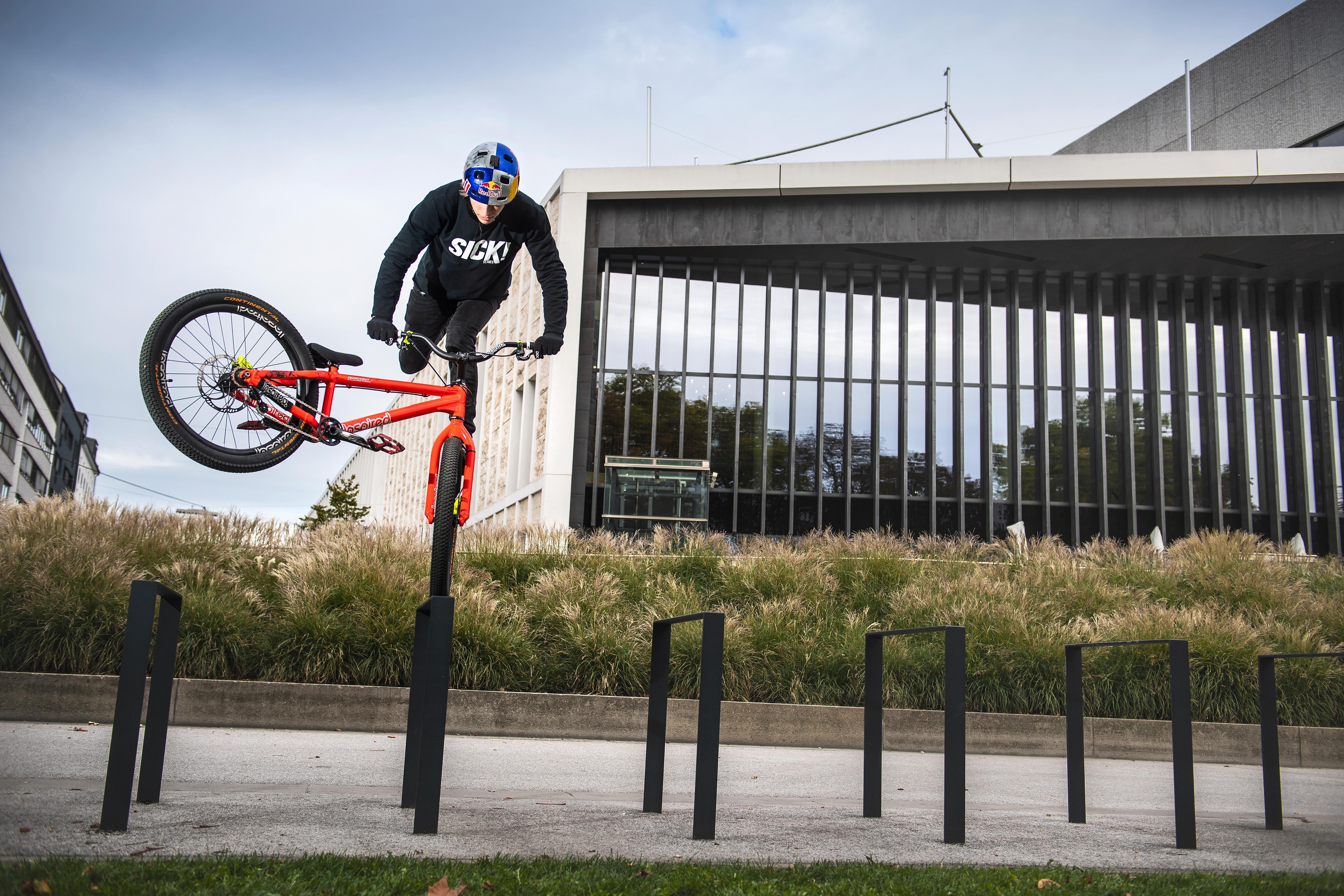 Fabio Wibmer only knows one way to escape the stress of everyday life, and that's getting out on his trial bike and riding. Living in a city and riding a bike presents many a challenge to the everyday commuter, but not to someone of Wibmer's talents.