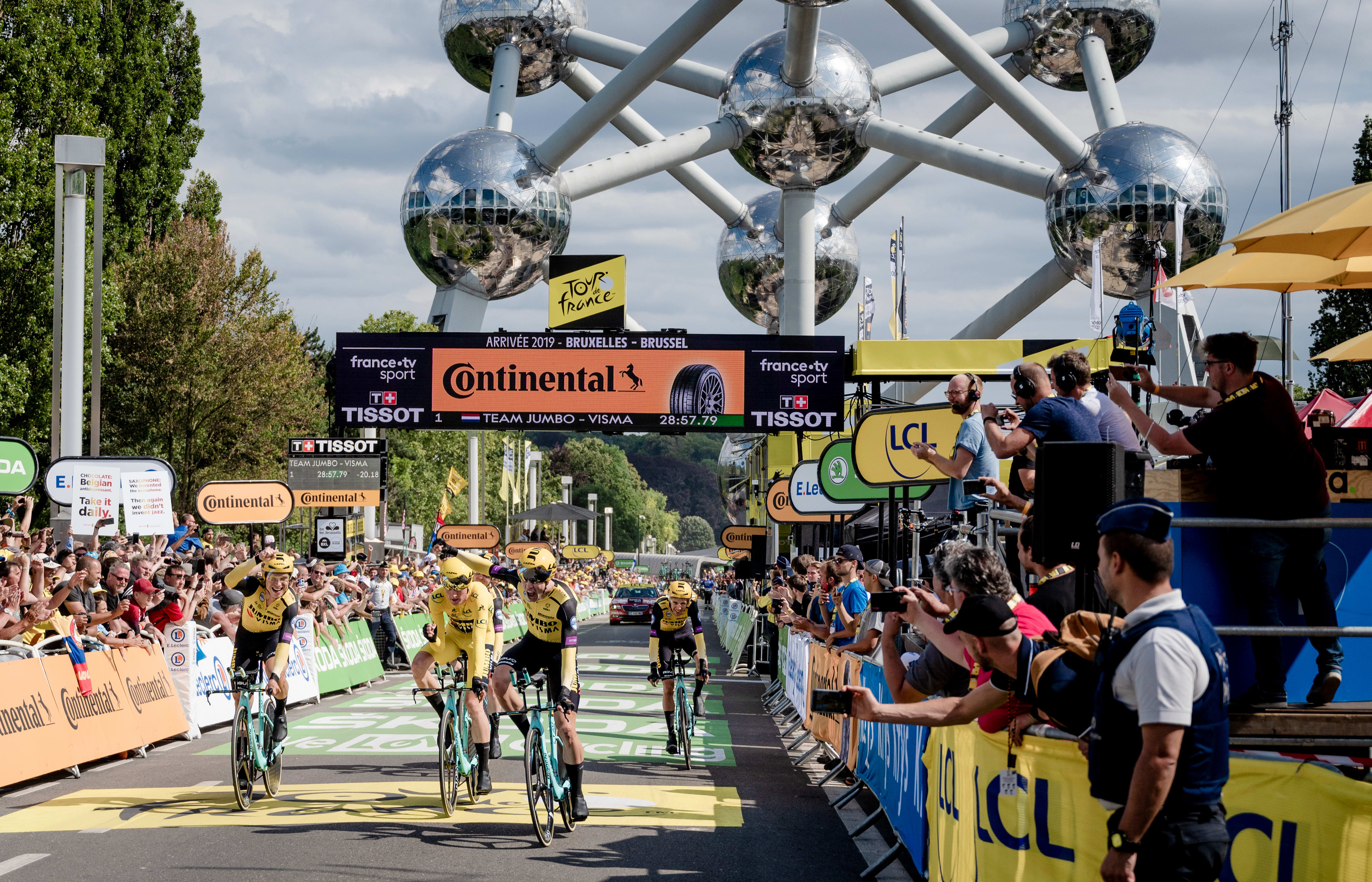 Van Aert laughs and says his initial participation in the Tour de France was "basically by accident". One of his Jumbo-Visma team-mates withdrew right before the race began and the Belgian was inserted onto the roster with little warning. Nonetheless, the 2019 Tour started off well. On Stage 10, the rookie came into the final kilometre with a select pack of 30 riders and out-muscled several elite sprinters for the win.