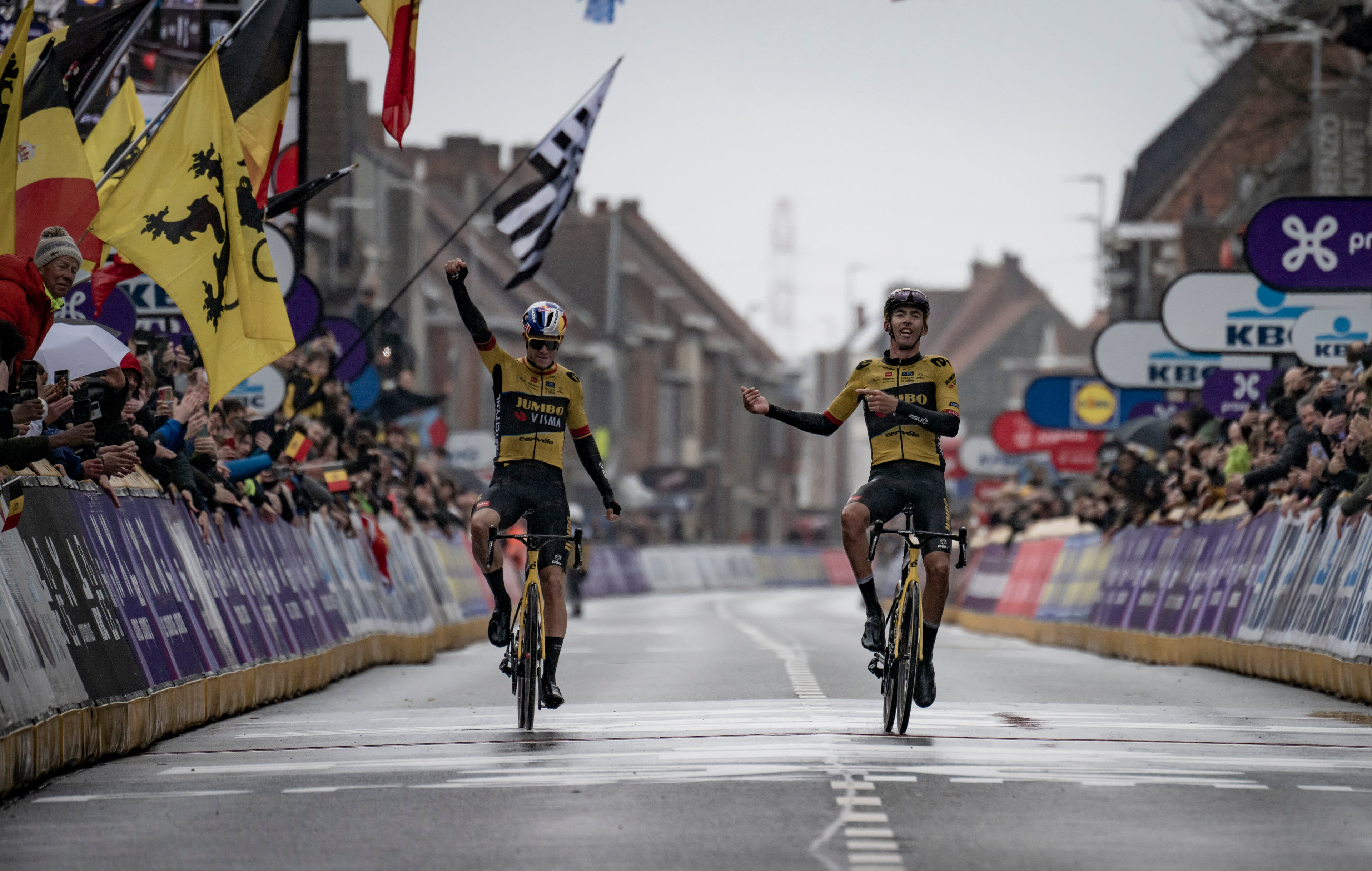 Van Aert's feelings about friendship and the deeper meaning of competition played out two weeks later at Gent-Wevelgem. There, van Aert appeared to be the strongest rider, but wound up out front for the final 50 kilometres with his team-mate, Frenchman Christophe Laporte. In horrible weather, the two riders held off a pack of pursuers and in the final moments, van Aert allowed his team-mate to cross the line first. Several icons of Belgian cycling criticised the gesture, opining that true champions shouldn't offer such gifts.