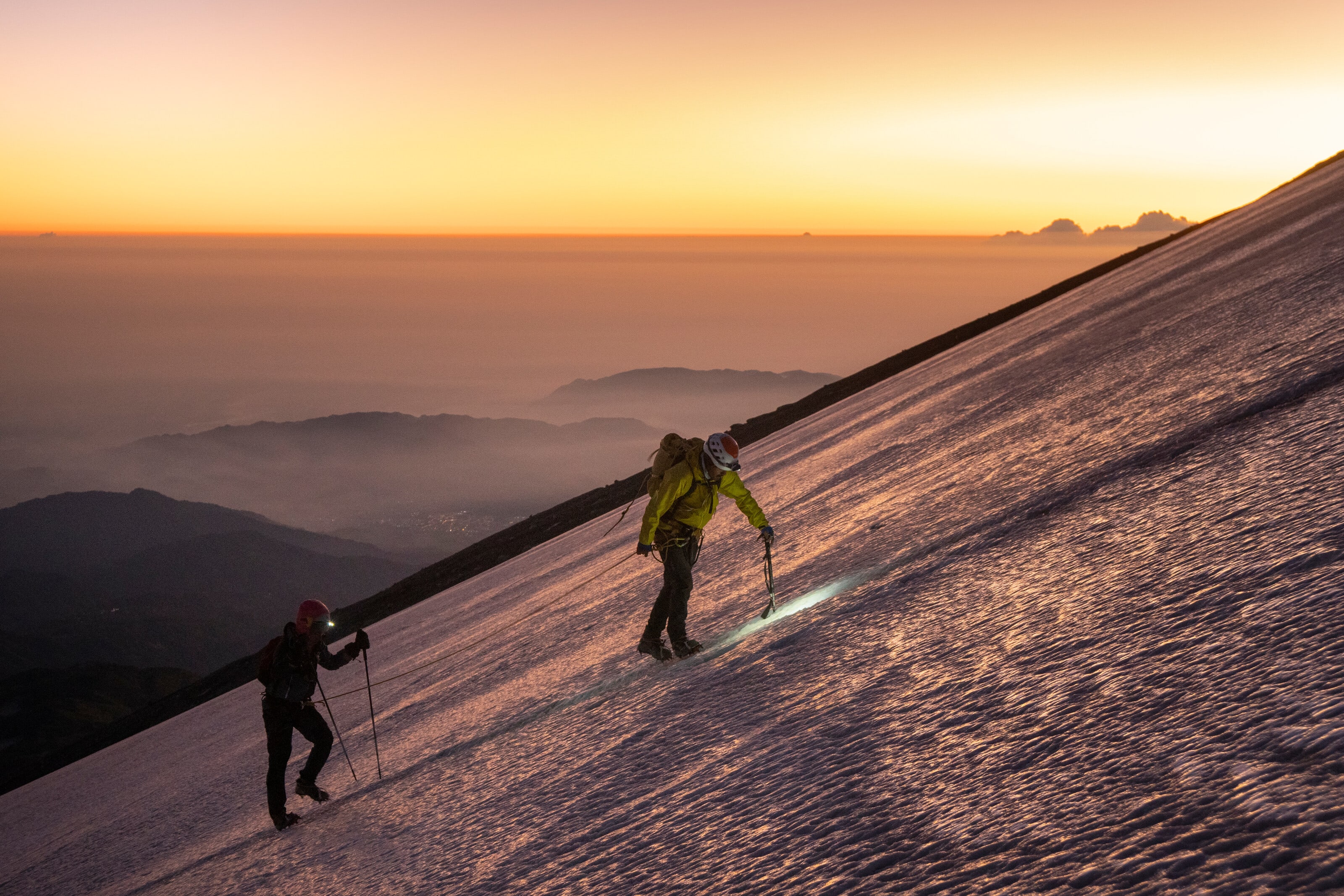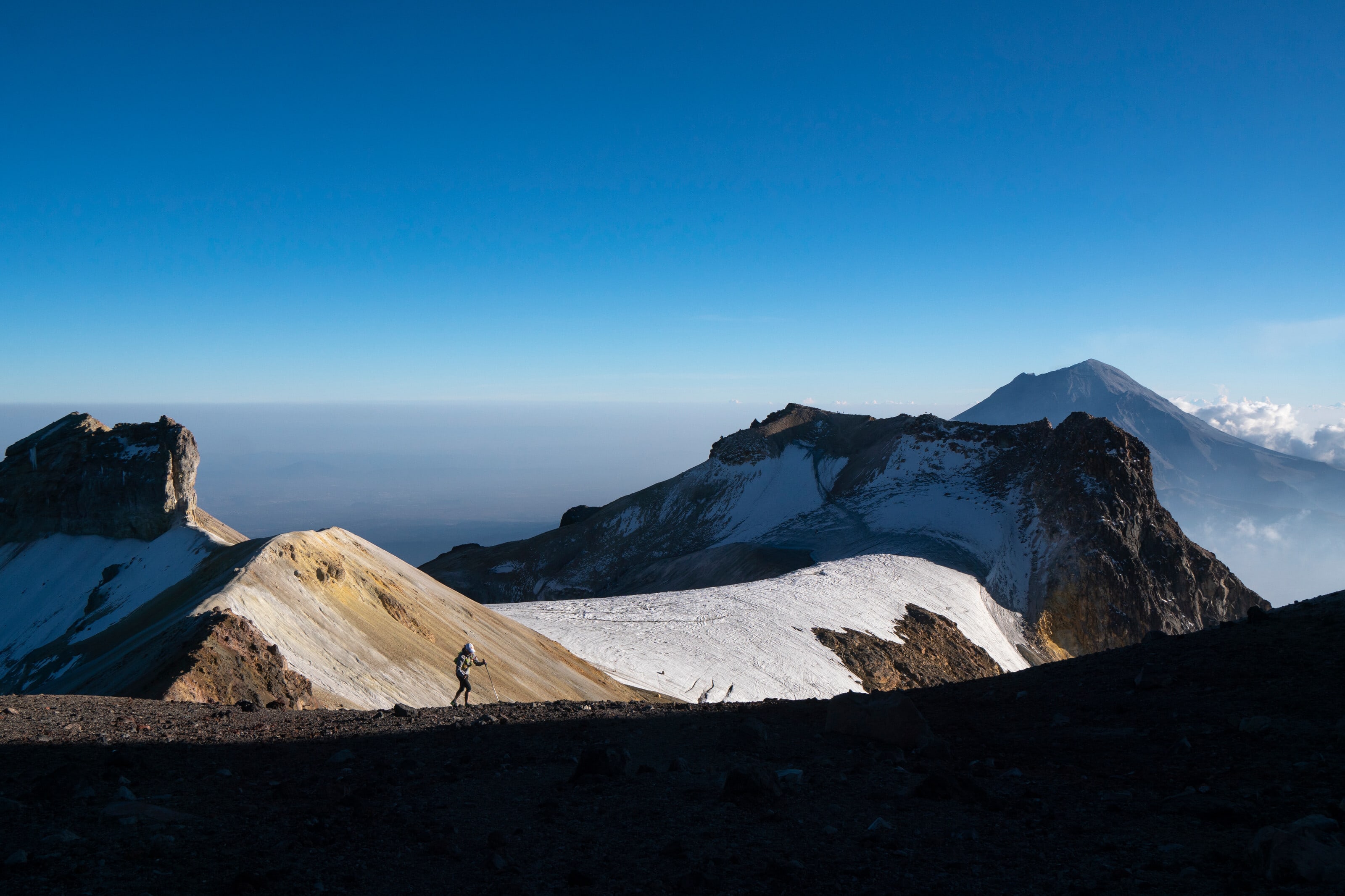 A las 4 de la mañana, en plena noche, después de haber dormido en el campamento, comienza la aventura para conquistar la cima del volcán número 1, Pico de Orizaba. Se trata de la montaña más alta de México, donde también está el glaciar más grande del país. Por lo general hacen falta tres horas para recorrer el glaciar, pero el equipo lo quiere cruzar en solo 45 minutos. Acompañaron a Alex Roudayna, el fotógrafo y especialista en ultramaratones, Marcos Ferro, además del director de documentales de aventura, Helios Nieto.