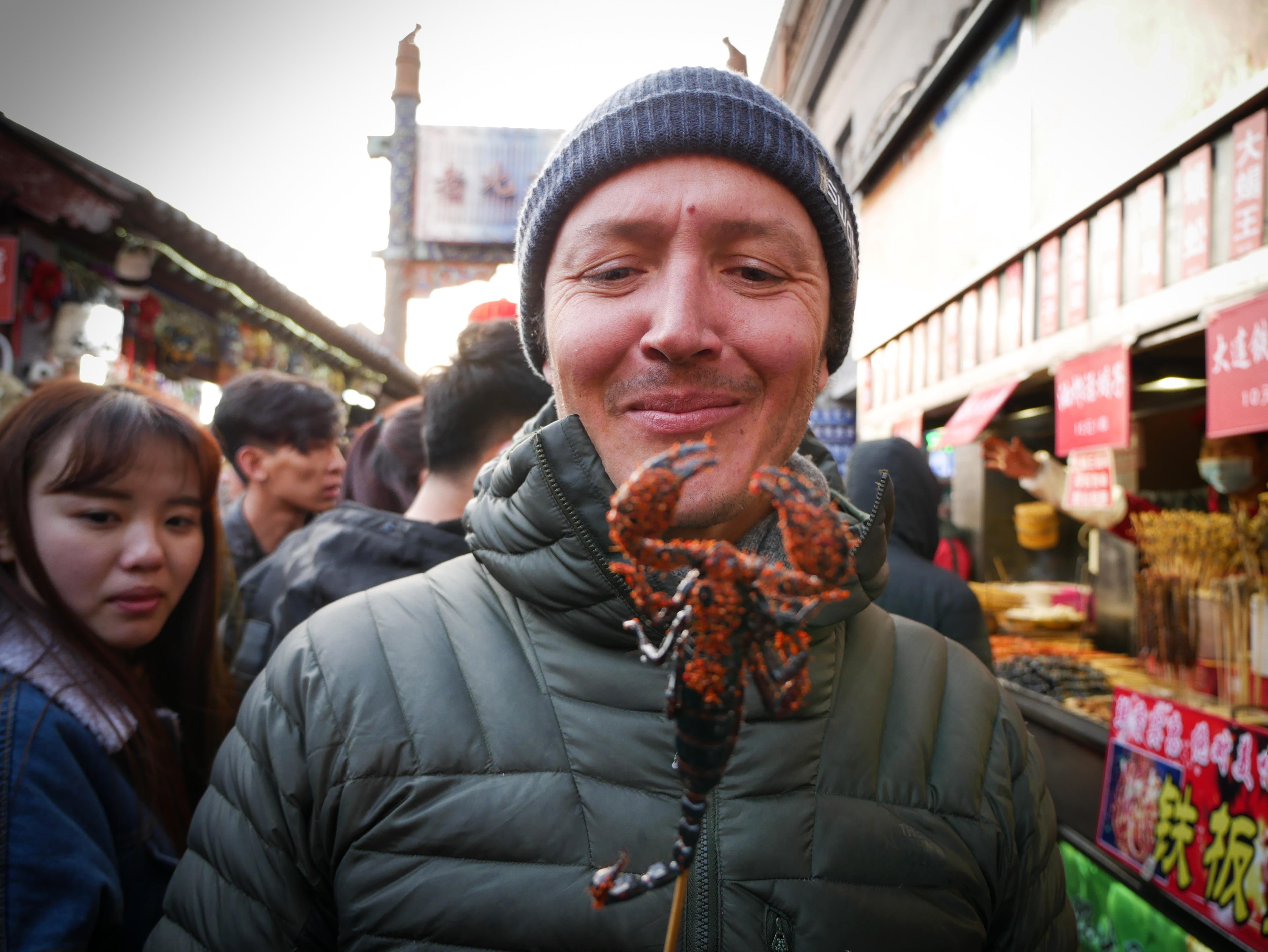 La policía, el ejército y la agencia de medio ambiente estaban informados de nuestra presencia y se nos prohibió poner un pie en la montaña Changbaishan. No nos quedó más remedio que abandonar el precioso terreno que habíamos descubierto. Así que volamos a Pekín para disfrutar de la mejor cocina: escorpiones, serpientes y gusanos de seda.