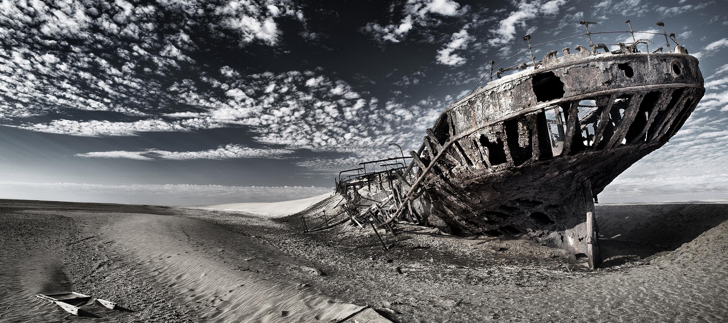 Los restos del barco se yerguen, desde 1909, entre la niebla de la Costa de los Esqueletos de Namibia, en su famoso cementerio de barcos. Ahora está a 800m en el interior, lejos del mar, en una zona tomada por asalto por el desierto, un recuerdo pugnaz de la vulnerabilidad del hombre frente al mar.