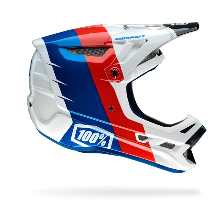 Ride 100% ha sviluppato il modello Aircraft Carbon tenendo bene in mente le esigenze della downhill, puntando alla massima sicurezza e al miglior comfort possibile: la costruzione in composito carbonio/kevlar (2 misure per il guscio e 3 per la calotta in EPS) ha forme modernissime e inconfondibili, permettendo anche di raggiungere un risultato importante in fatto di leggerezza e ventilazione. Sono soddosfatti i più importanti standard di sicurezza nel mondo MTB e BMX, integrando ben 25 feritoie per l'aerazione.