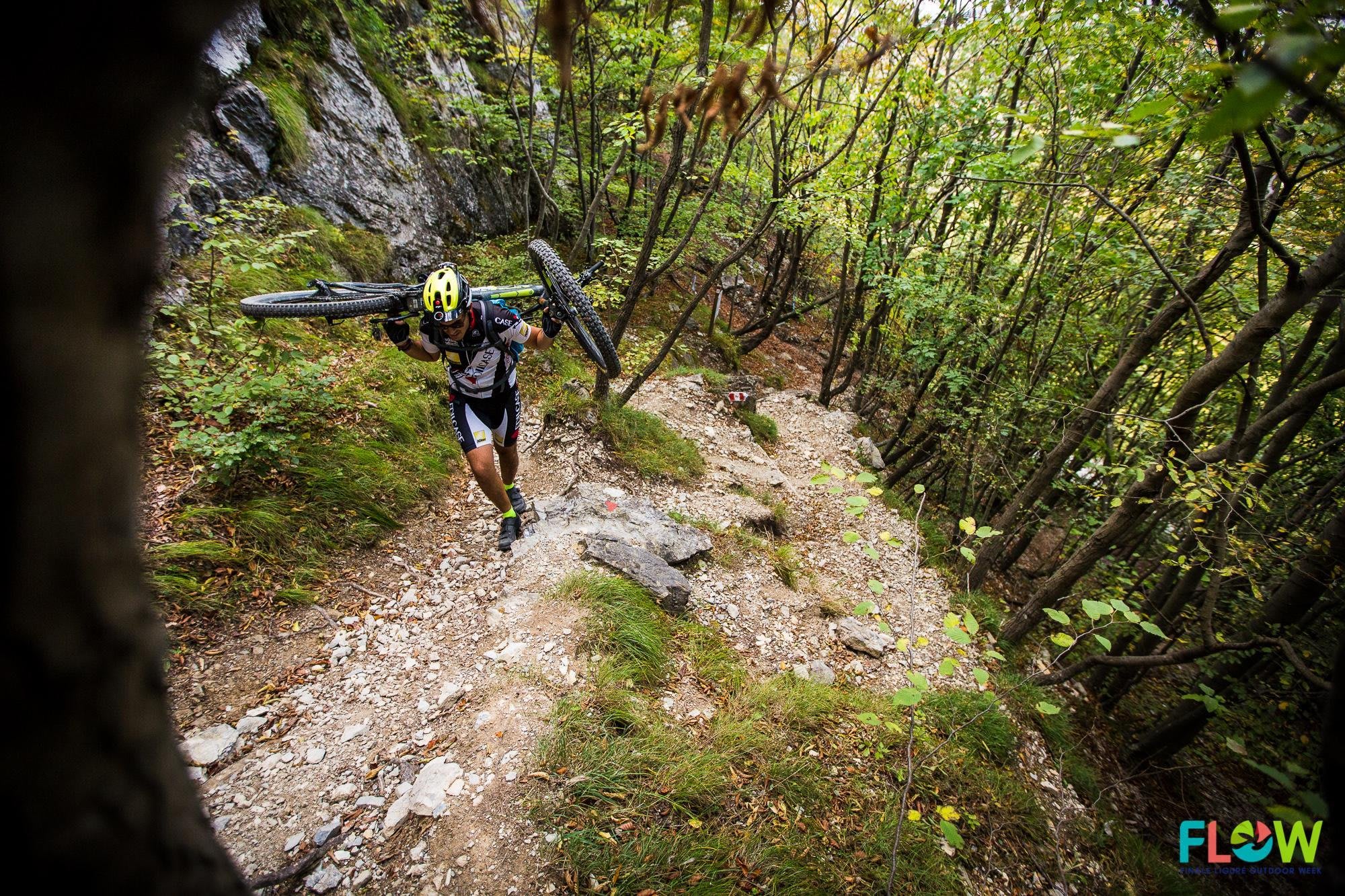A pedali e bici in spalla: la soddisfazione di raggiungere una vetta con le proprie gambe, percorrendo itinerari selvaggi e poco battuti è davvero indescrivibile. Lo sanno bene i ragazzi di Cicloalpinismo.com che al Flow Festival di Finale Ligure hanno portato un gruppo di impavidi sul monte Carmo di Loano, quasi 1400m, la cui vetta dista poco meno di 8 Km dal mare. Senza ombra di dubbio quanto di più "cicloalpinistico" la provincia di Savona possa offrire, con panorami che spaziano dalla Corsica all'arco alpino occidentale, dalle Apuane a Ventimiglia, con una compilation di tracce interminabili che vanno dal divertente e scorrevole "single track" al tecnico ed esposto.