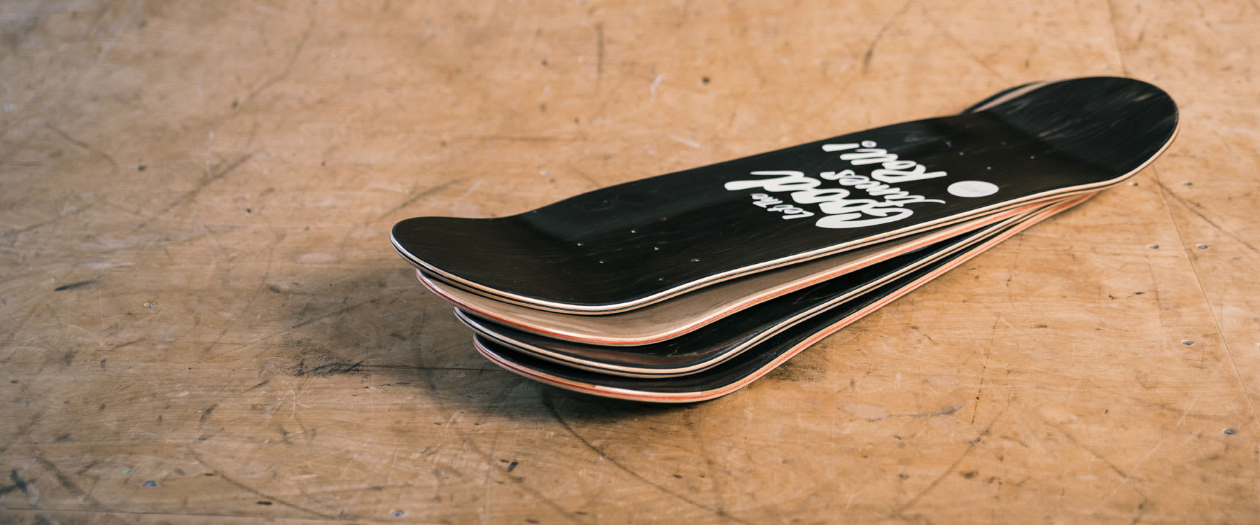 Tra tutti gli elementi che compongono uno skateboard, la tavola è quello che negli anni ha forse subito meno cambiamenti. Fin dagli anni '80 la formula vincente è sempre stata quella: sette stratidi acero canadese (li potete contare guardando lo spessore) a venatura incrociata incollati e pressati a caldo. Col tempo la forma è cambiata fino a diventare l'ovale oblungo che tutti conosciamo, e di tanto in tanto qualcuno prova a sperimentare con nuovi materiali (Santa Cruz ci aveva provato con il kevlar), ma la ricetta sembra non cambiare.