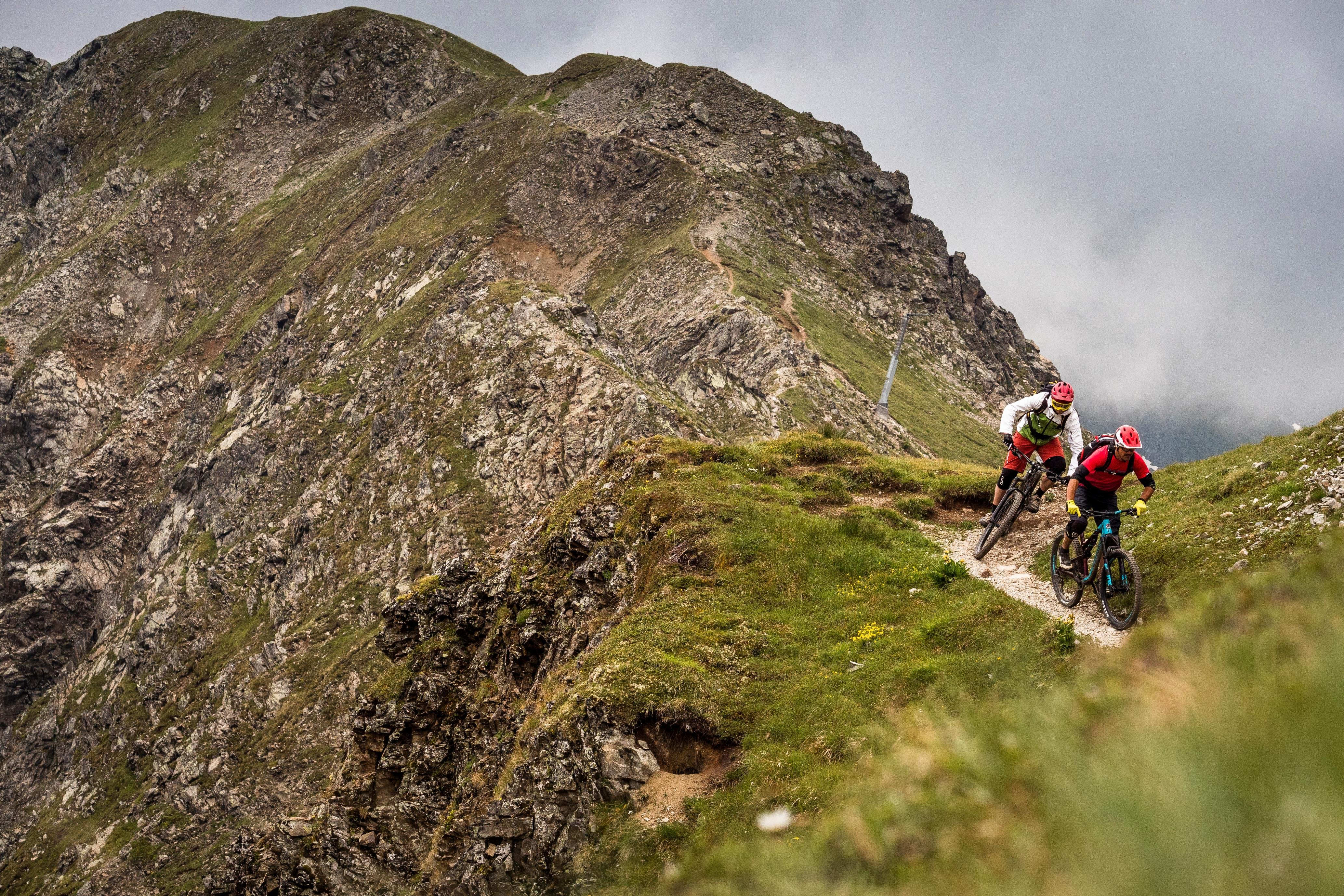Oltre alle linee di salti e alla pump track del bike park, e al perfettamente disegnato flow trail A-Line che scende per 6 Km e 550m di dislivello dall'arrivo della funivia Gotschnaboden, il riding a Davos Klosters è tutto su singletrack. Questa ricchezza di percorsi naturali ne fa una destinazione perfetta per gli amanti dell'enduro. Sebbene i tracciati di Davos siano gestiti da un team dedicato di trail builder, non li troverete perfettamente pettinati. Sono dei veri sentieri di montagna, da percorrere con il necessario rispetto per gli altri fruitori, come escursionisti a piedi e trail runner. A Davos, si tratta di "condividere il sentiero" - Share the Trail come indicato sui numerosi cartelli - ed è consigliato affrontare alcuni dei migliori tracciati a inizio o fine giornata, per godere al massimo del loro incredibile flow senza interruzioni.
