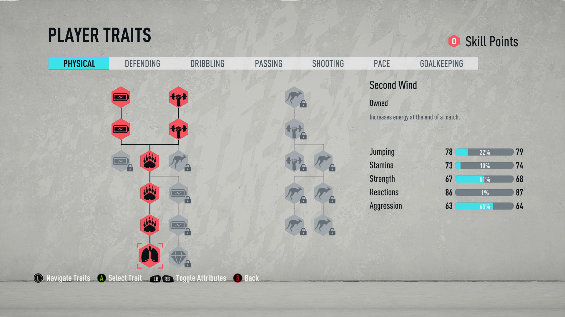 Aumentate le vostre abilità fisiche fin da subito così da essere in grado di vincere le palle contro le punte più energiche: come potete ben immaginare, è importante anche difendere. Agilità ed equilibrio sono poi altri tratti importanti se vorrete controllare un difensore con buon gioco di palla.